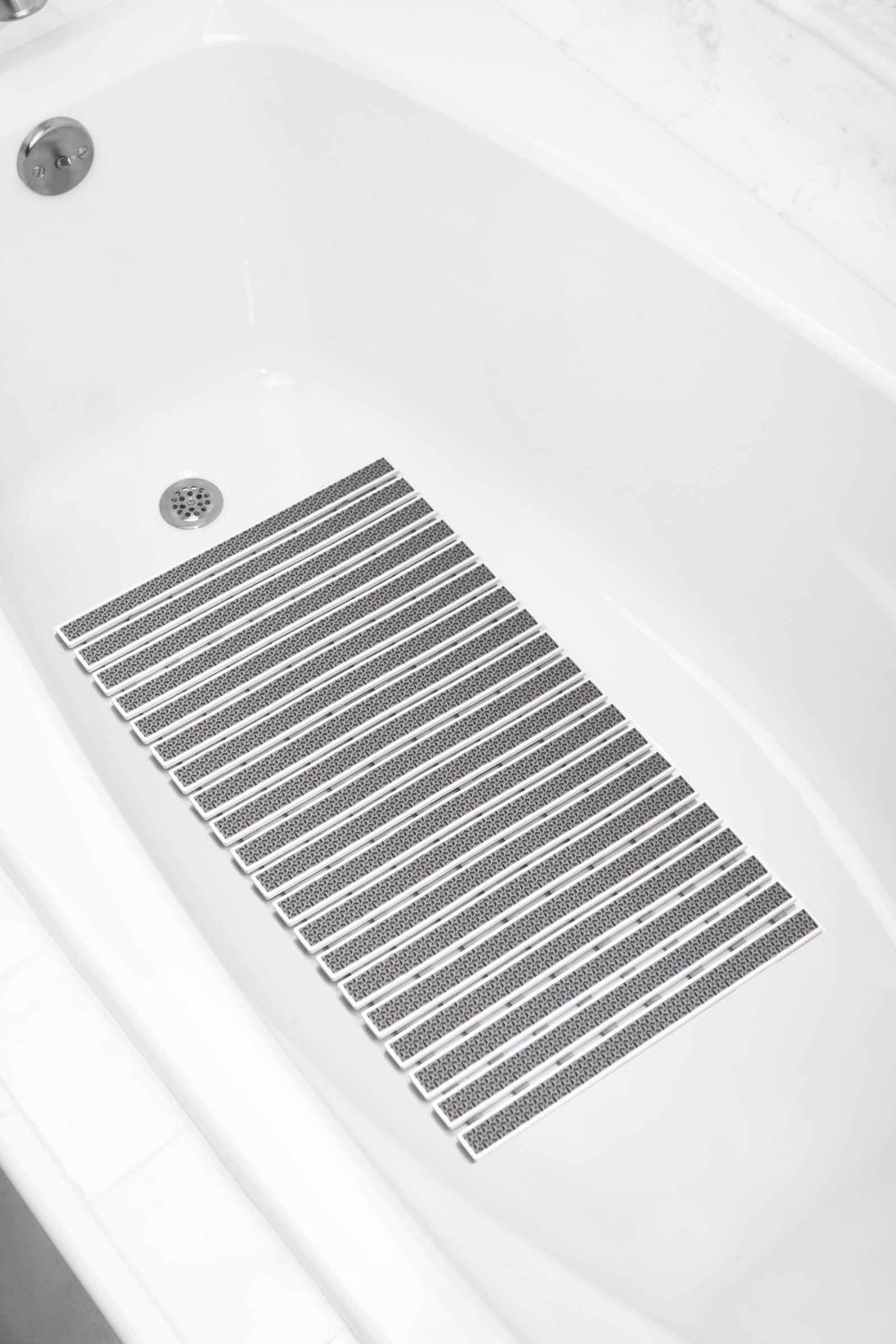 Soft Silver and White Bath Mat, Mainstays Rubber Multi-Surface, Slatted Design