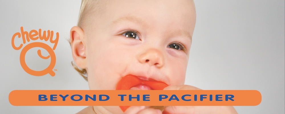 Chewy Q’s encourage early mouthing experiences that support the transition from midline tongue exploration to lateral jaw movement. This transition facilitates the development of the masseter muscle so critical for mature speech production as well as biting and chewing skills.