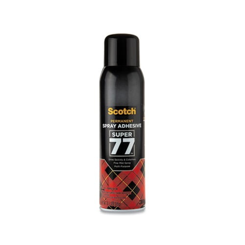 Scotch Super 77 Multi-Purpose Adhesive is an extremely versatile, fast-drying spray adhesive that bonds a wide range of lightweight materials. Its fast, aggressive tack and low soak-in make it ideal for a broad range of projects. Use it for bonding paper, cardboard, fabric, cushion foam, plastic, metal, wood, and much more. Adhesive Type: Aerosol/Spray Packing Type: Can Washable: No Color on Application: Clear.