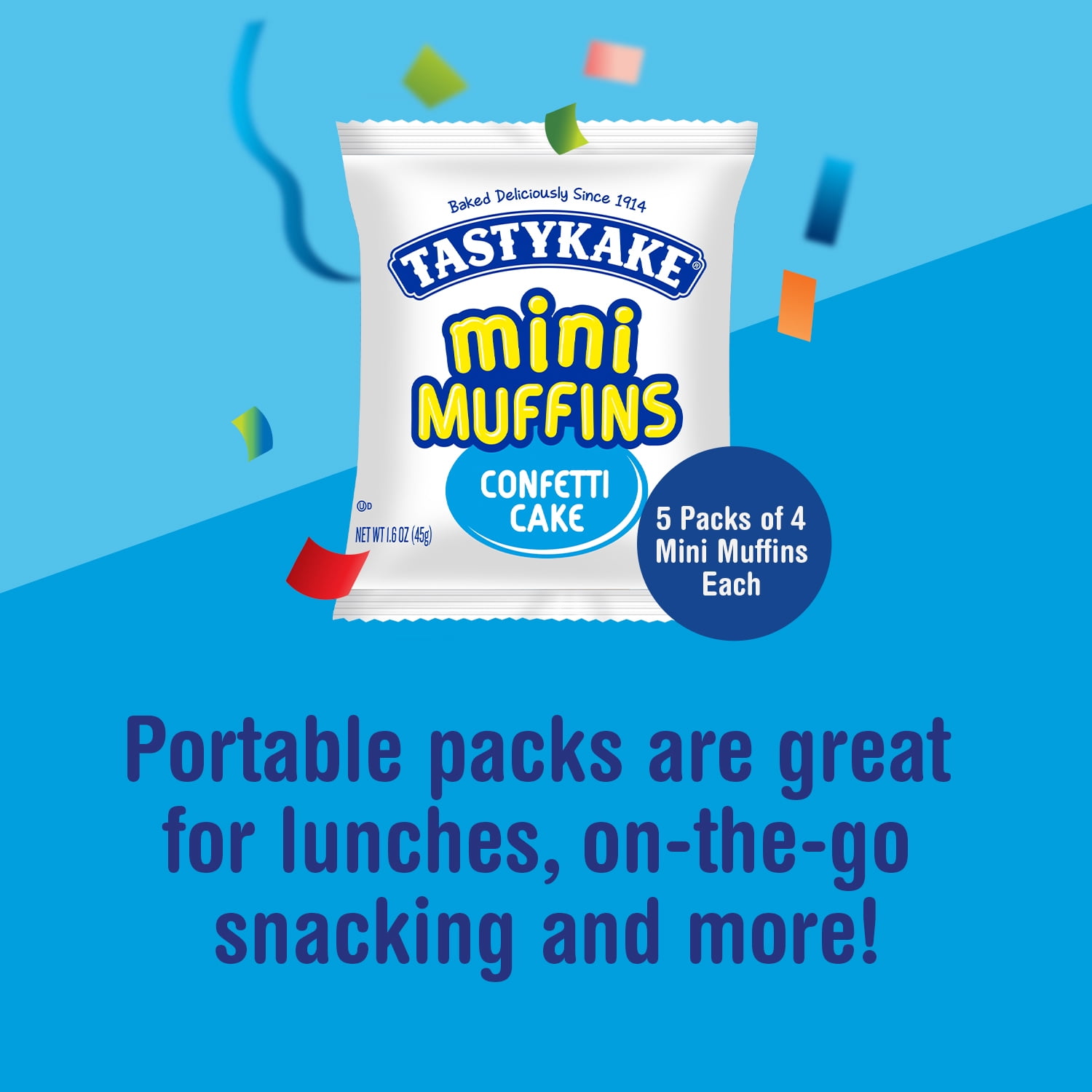 Tastykake Confetti Cake Mini Muffins, Portable and Shareable, Confetti Muffins, 5 Pouches per Box