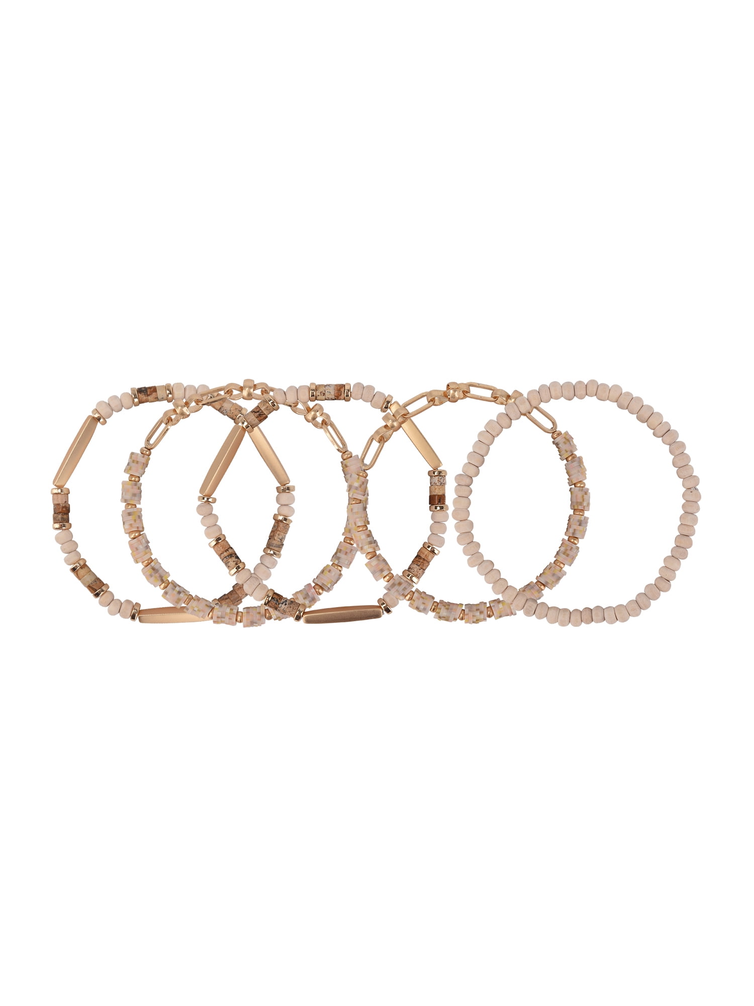 The Pioneer Woman Brown and Gold Beaded Stretch Bracelet Set, 5 Pack