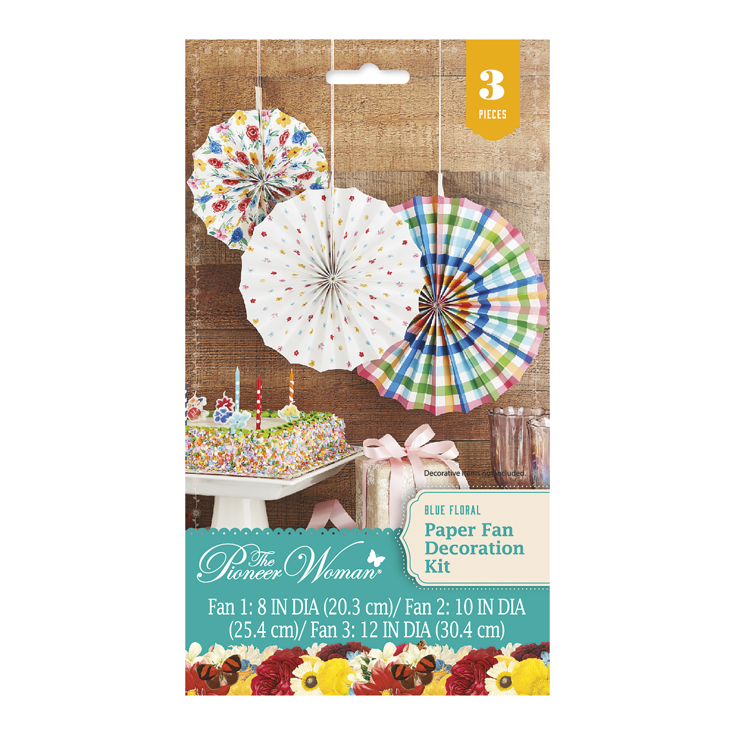 Dress up your space with bright pops of color using our Pioneer Woman Floral Blue Tissue Paper Fan Decorations. Featuring an assortment of floral and gingham patterns, these tissue paper decorations will look stylish at your spring picnic, garden party, or birthday party. Hang all three 8, 10, and 12-inch paper pinwheels over a party table, in front of a window, or even from a tree branch outside! Find more ways to style your celebration and shop the rest of our affordable floral party supplies today.