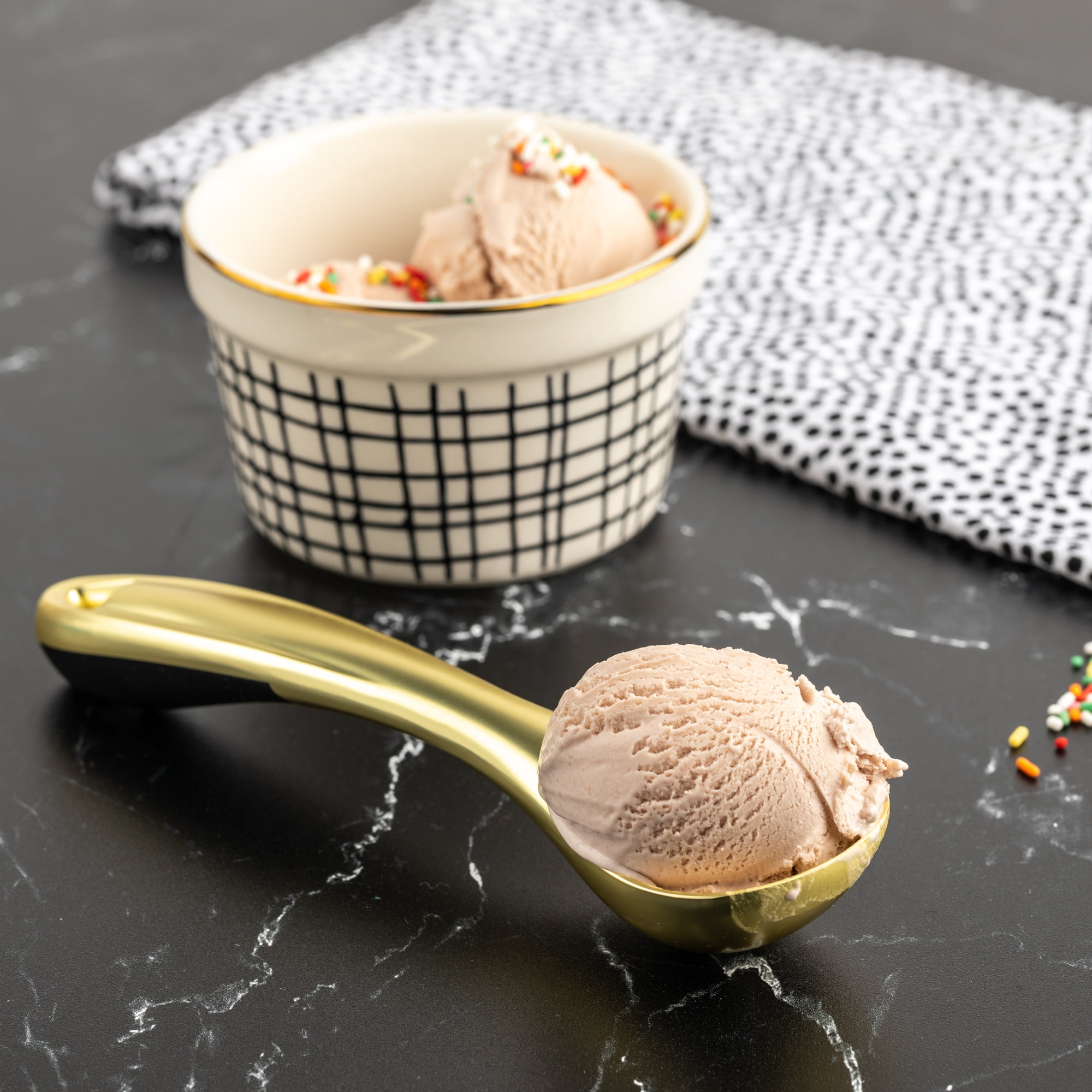 Thyme & Table Gold Ice Cream Scoop is a part of the Thyme & Table Luxe Collection. The ice cream scoop includes a brushed gold finish and made of durable material. Ergonomic handle for a steady and comfortable grip. Facilitate smooth scooping and provide easy release of the ice cream