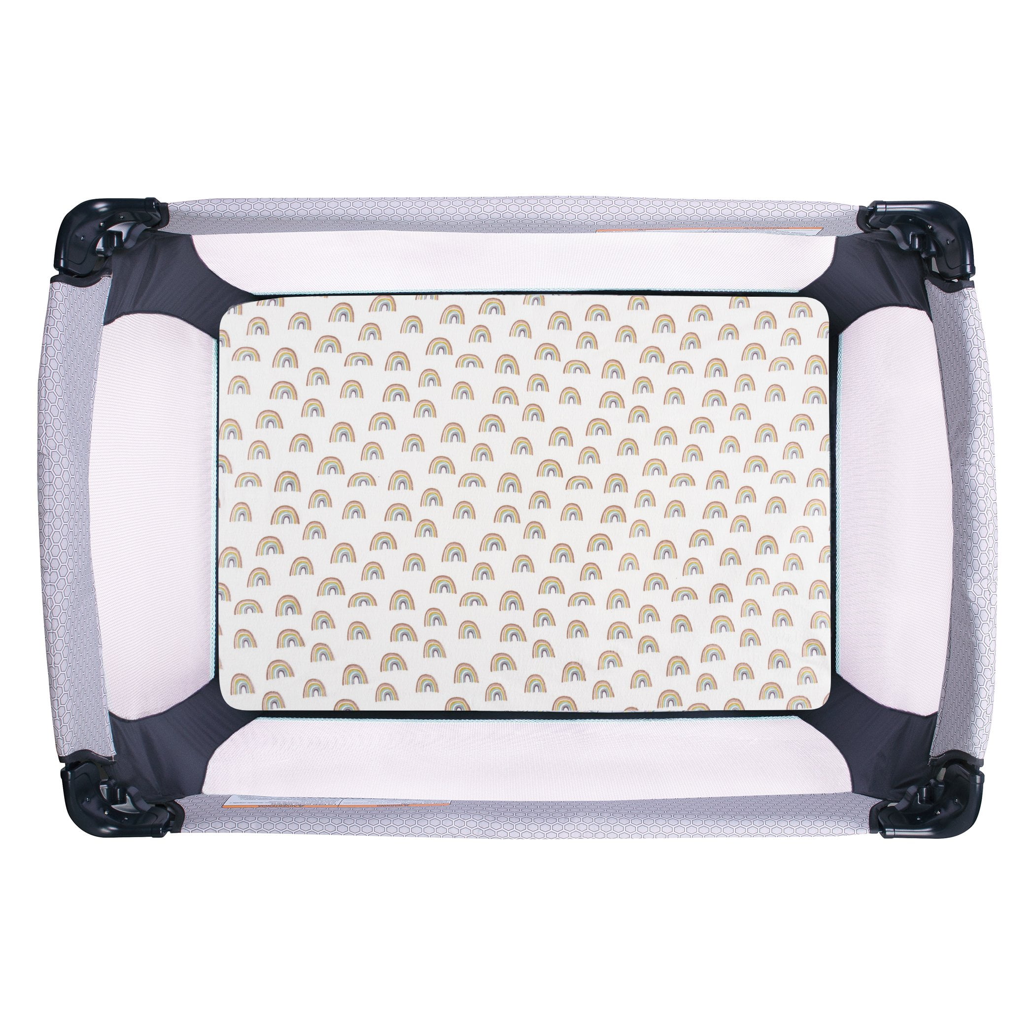 - Fits a standard playard mattress and measures 28 in x 40 in