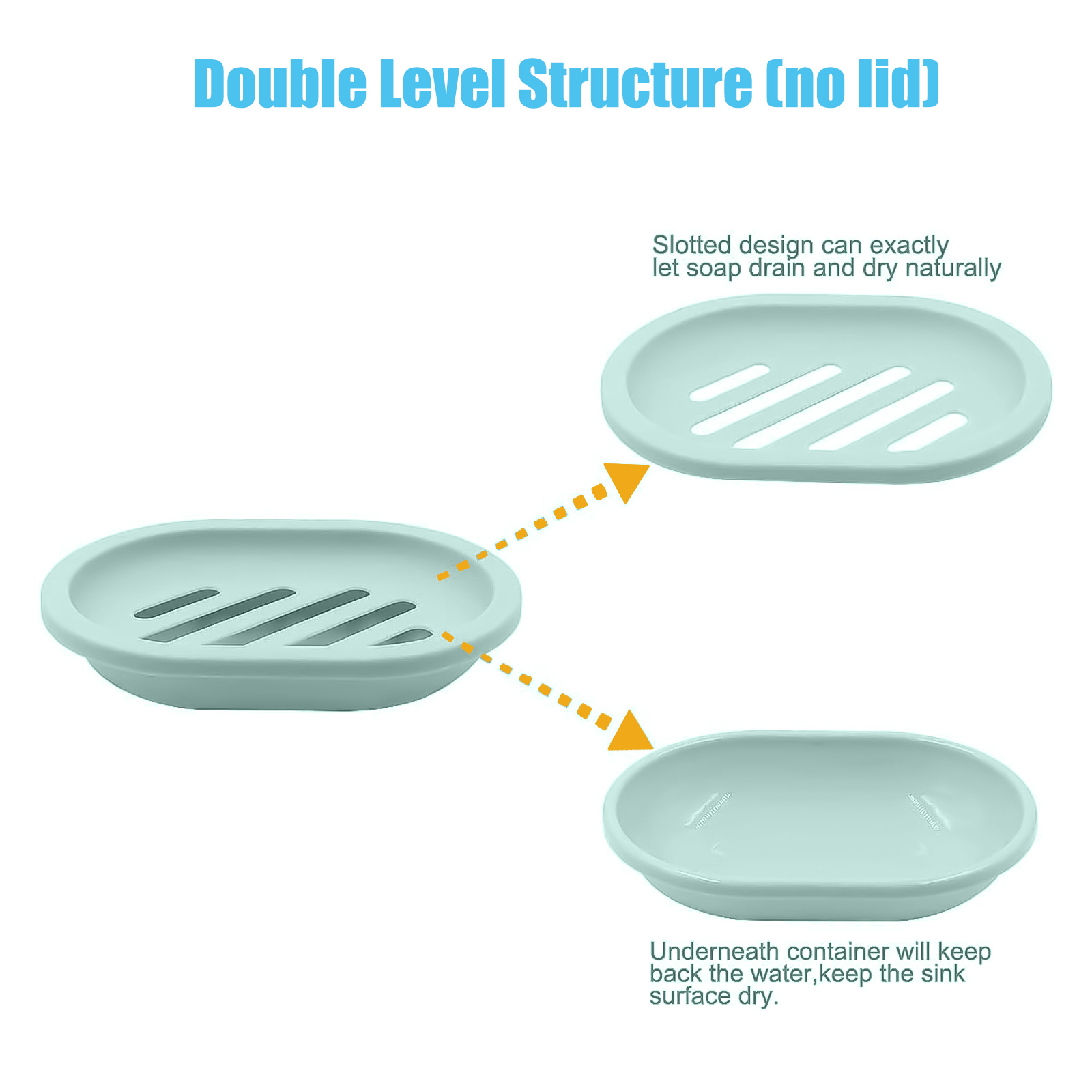 - 2-Layer slotted soap dishes, self-draining to keep soap dry
