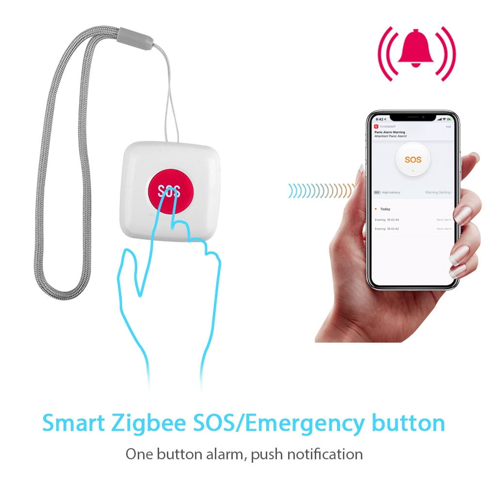 - *ZigBee Tuya SOS button linkage with home other smart devices such as lights, curtains, siren, then notifications pushed. Low-consumption design, which can make it work long time.