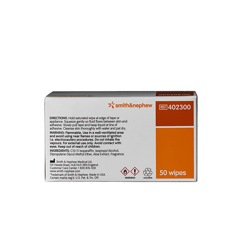 Smith & Nephew Uni-Solve Adhesive Remover Wipes 4 Boxes of 50Smith & Nephew Uni-Solve Adhesive Remover is formulated to reduce adhesive trauma to the skin by thoroughly dissolving dressing tape and appliance adhesives. It is ideal for removing acrylic-based, rubber-based, and hydrocolloid-based residues from the skin. Aloe soothes and moisturizes skin without greasiness.Smith & Nephew Uni-Solve Adhesive Remover applies easily and removes quickly.Pleasant fragrance with no harsh odor.Convenient packaging allows for less wastage.Environment friendly as does not contain ozone-depleting chloro-fluorocarbons.UniSolve Adhesive Remover Wipes Box of 50 – 4 Pack