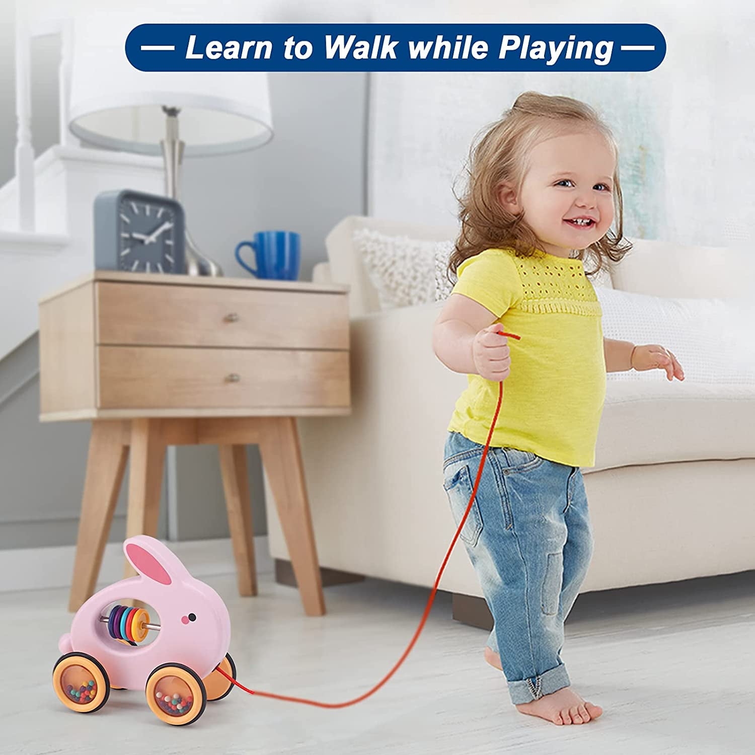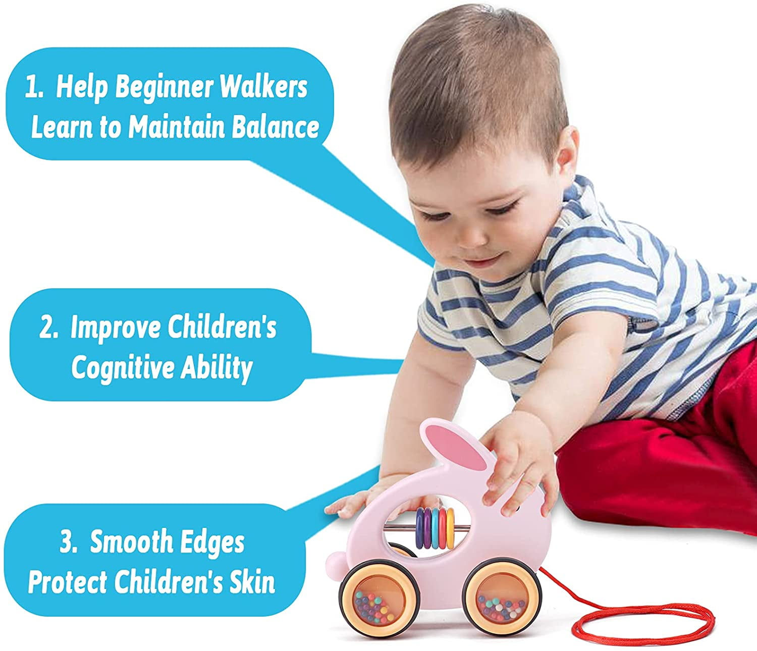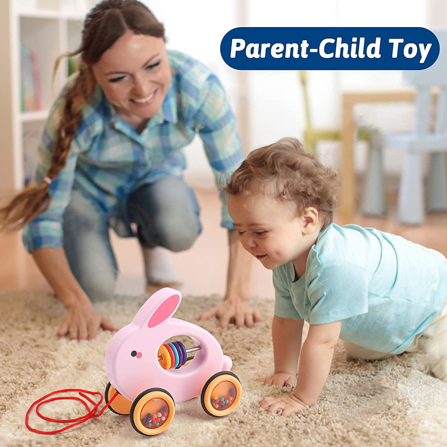 Pull rabbit toy is an effective interactive way between parents and babies. Parents can assist kids in pulling the rabbit, spend some times to have fun with kids. It’s a decent birthday gift for babies & toddlers.