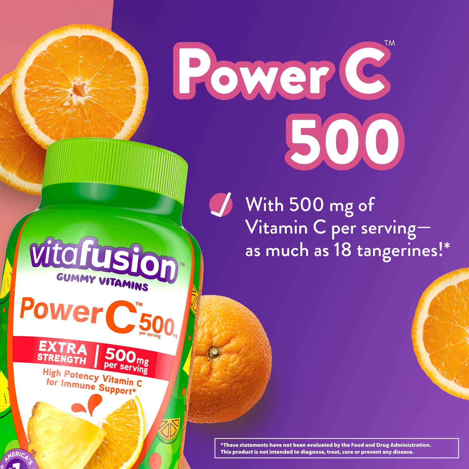 - Immune Support (1): Each four-gummy serving has 500 mg of Vitamin C to help with immune support (1) giving you the same amount of Vitamin C as 18 tangerines in easy-to-eat gummies
