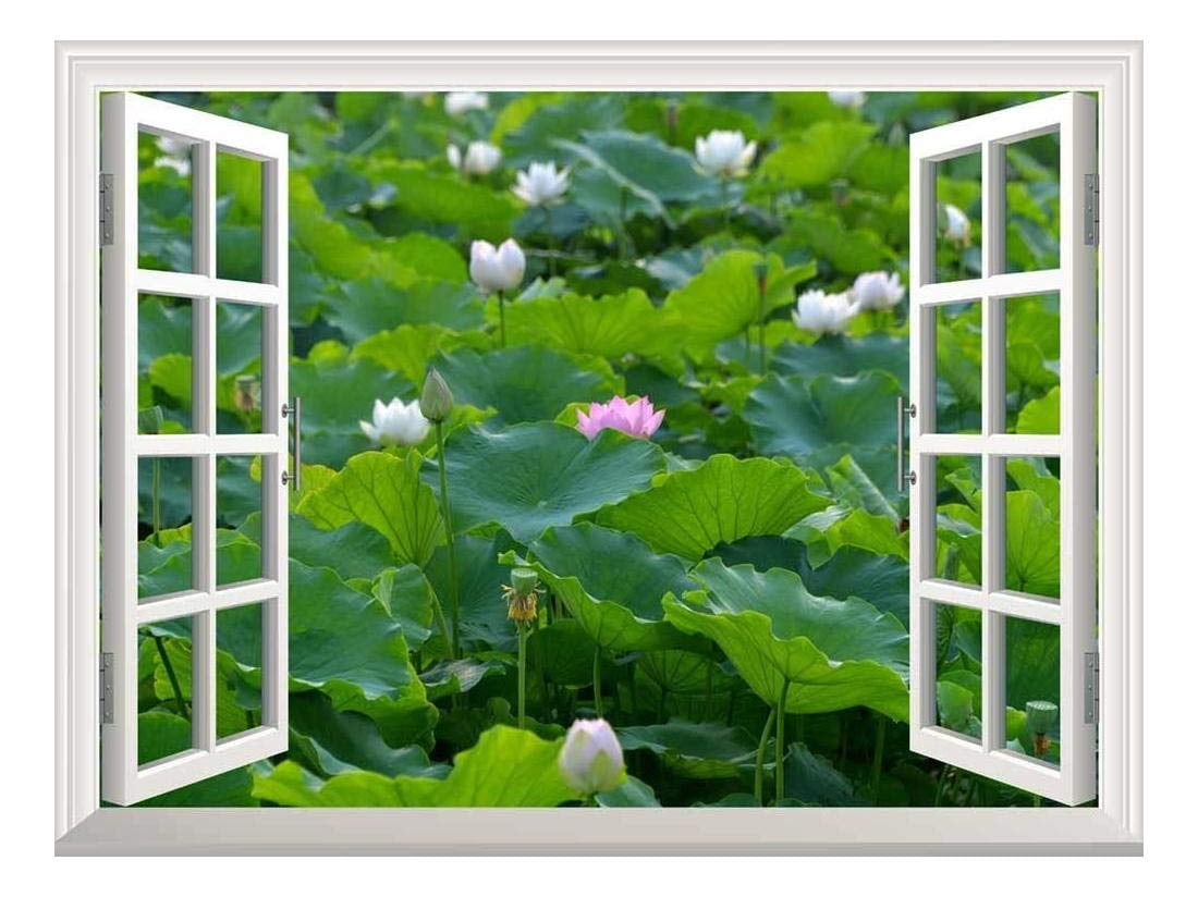 wall26 Removable Wall Sticker/Wall Mural – Lotus in a Pond | Creative Window View Wall Decor – 24’x32′
