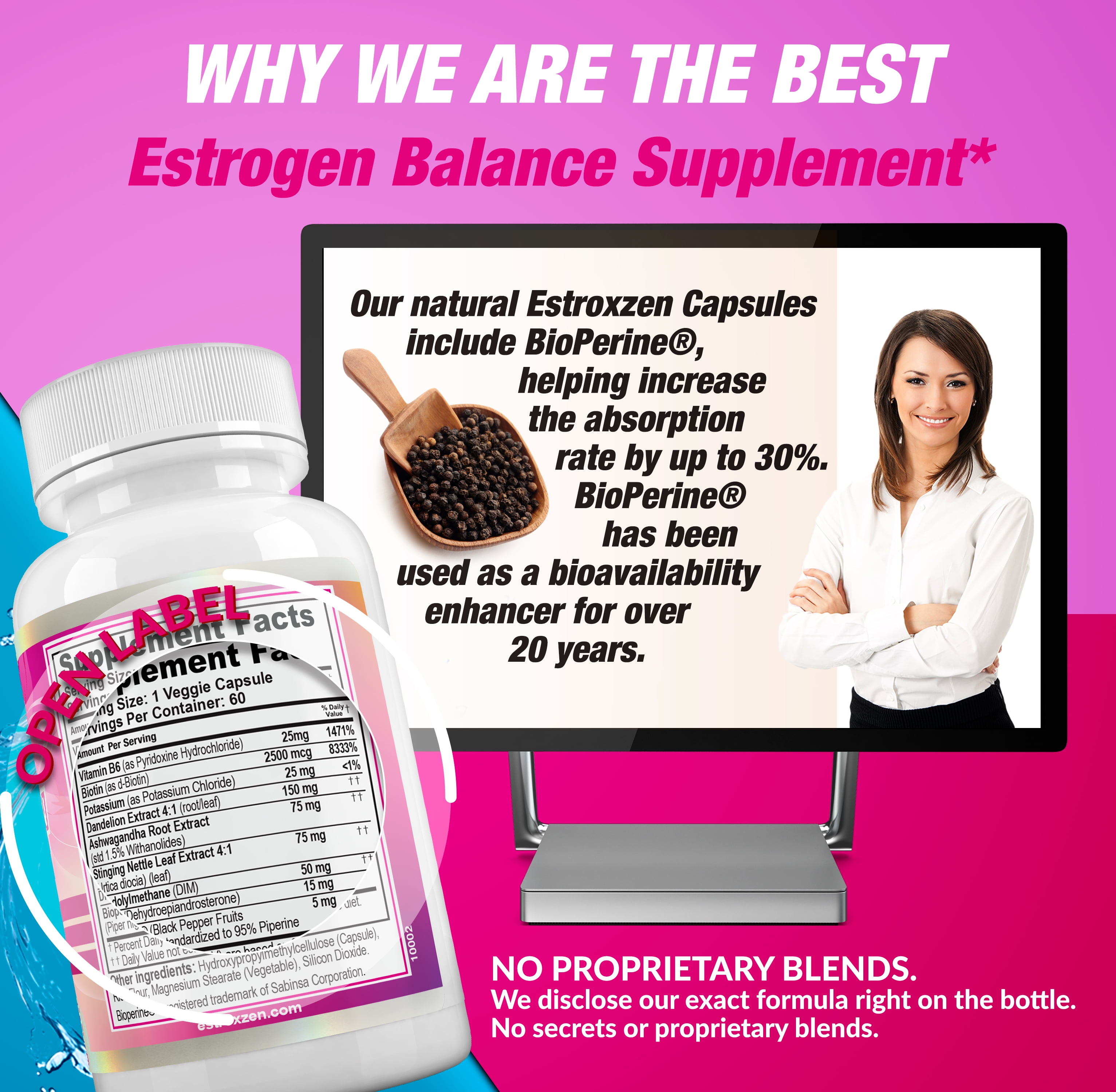 XZEN Estroxzen Estrogen Balance for Women Menopause Relief Supplement Hot Flashes 60 Capsules