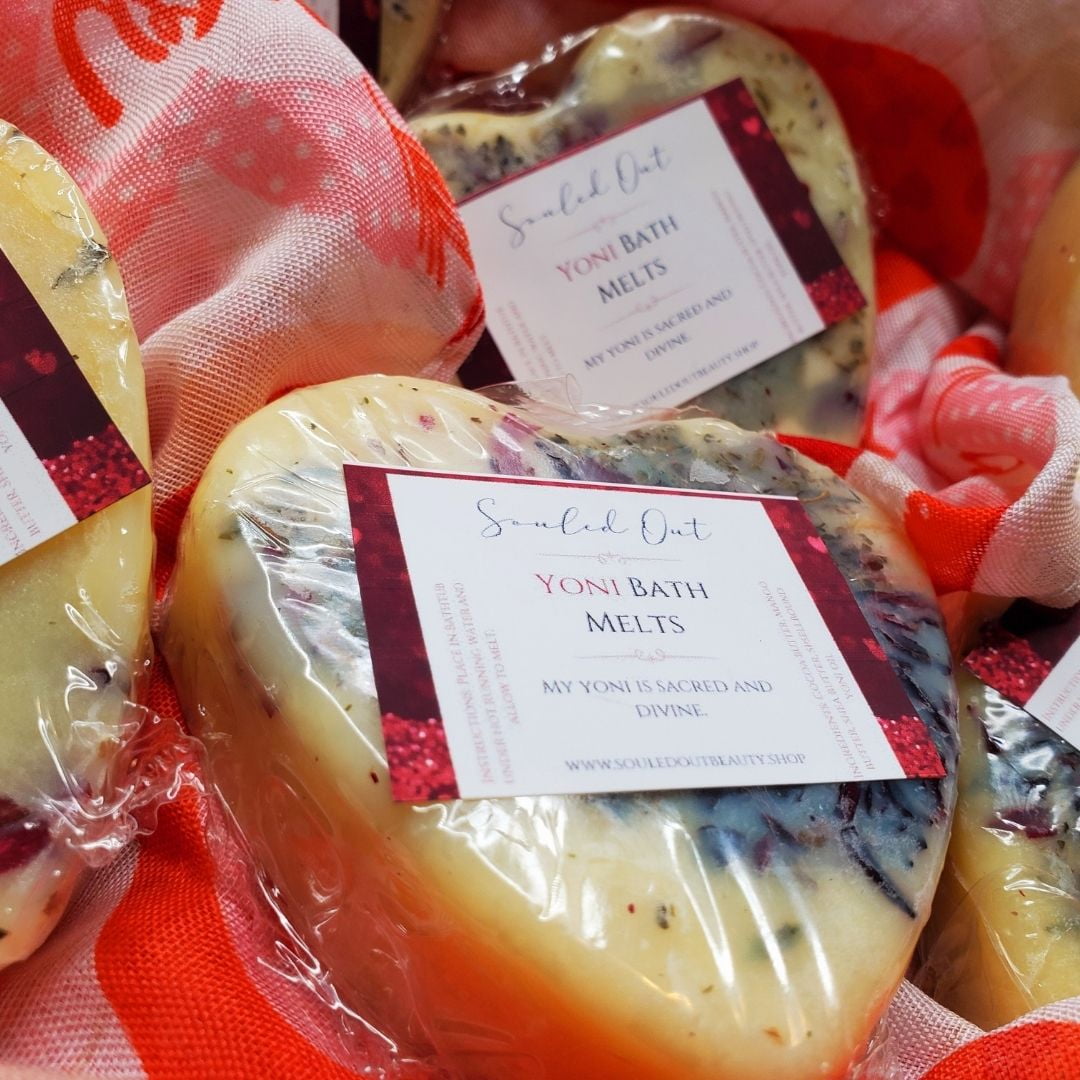 Our Yoni Bath Melts are formulated to aid your vagina in healing. It is made with an infused oil that will help increase your sexual appetite, make you wetter and tighter, and balance your PH. Say goodbye to BV. It smells like Cocoa Butter that’s been soaked in your favorite bouquet of flowers.