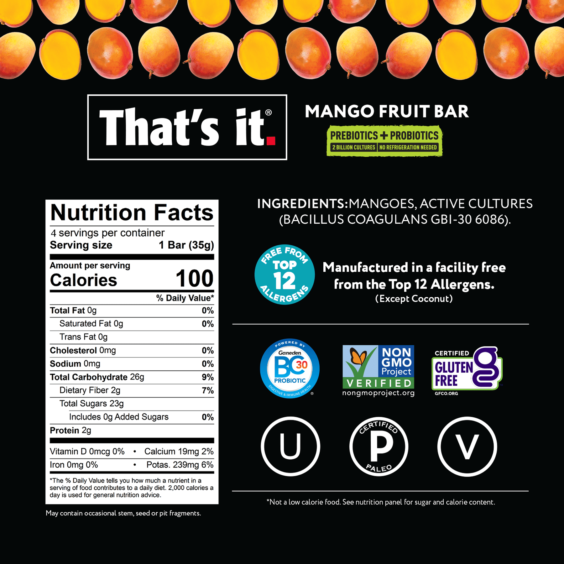 That’s It Prebiotic & Probiotic Mango Fruit Bars, 1.2 oz, 4 Count