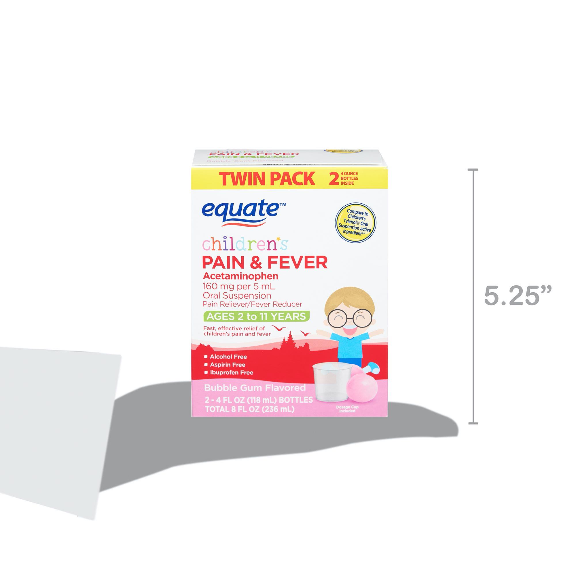 Equate Children’s Pain Reliever Oral Suspension Liquid, Bubble Gum Flavor, Acetaminophen 160 mg per 5 mL, Effective, Safe Pain Reliever/Fever Reducer for Children Age 2-11 Years, 4 oz, 2 Pack
