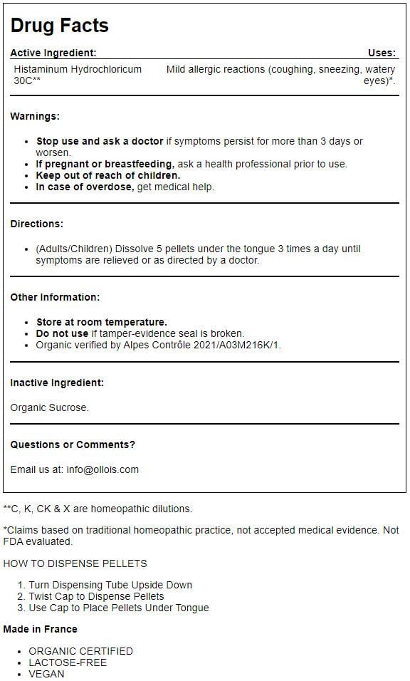 Ollois Homeopathic Histaminum Hydrochloricum 30c 80 Pellets