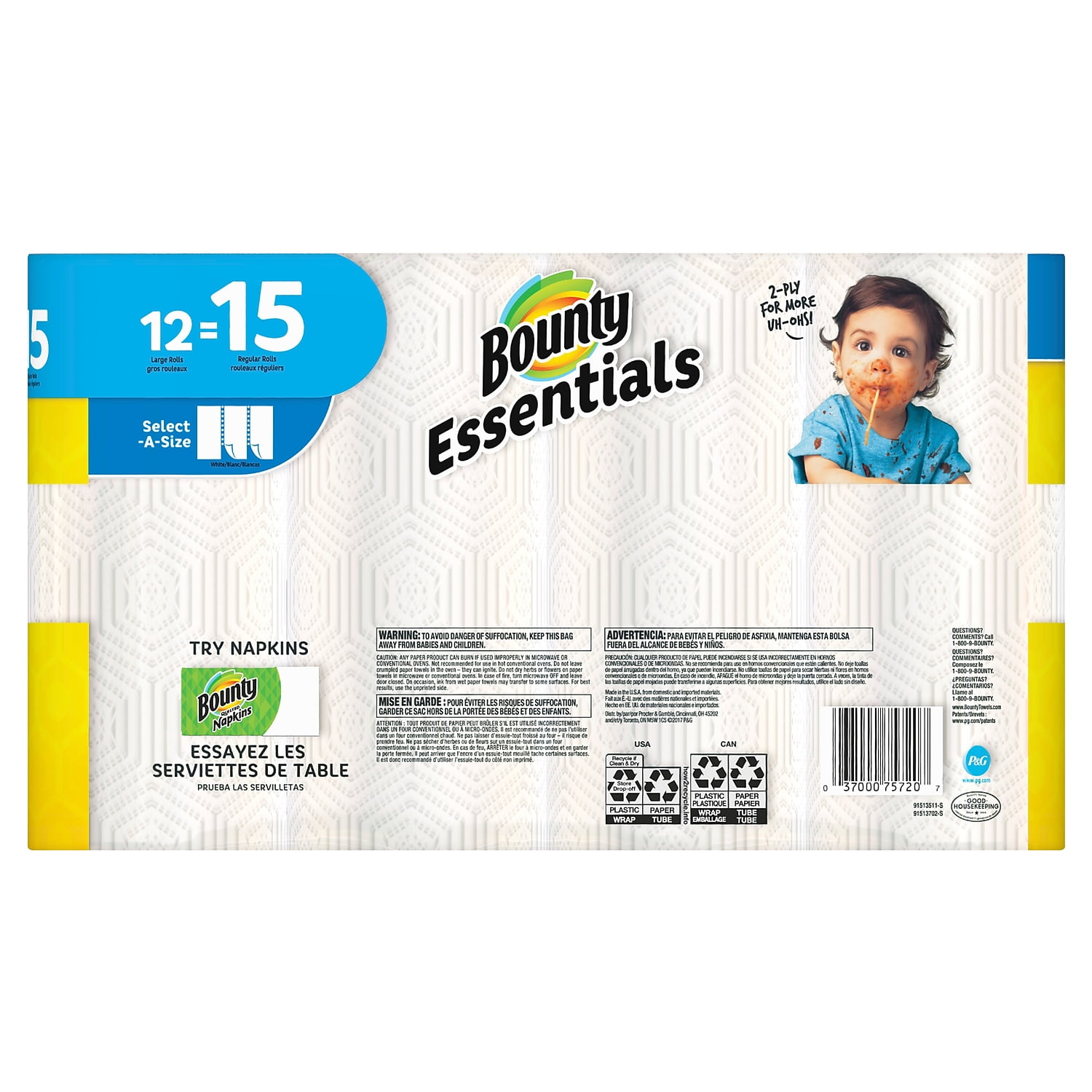 Bounty, PGC75720, Essentials Select-A-Size Towels, 936 / Carton, White