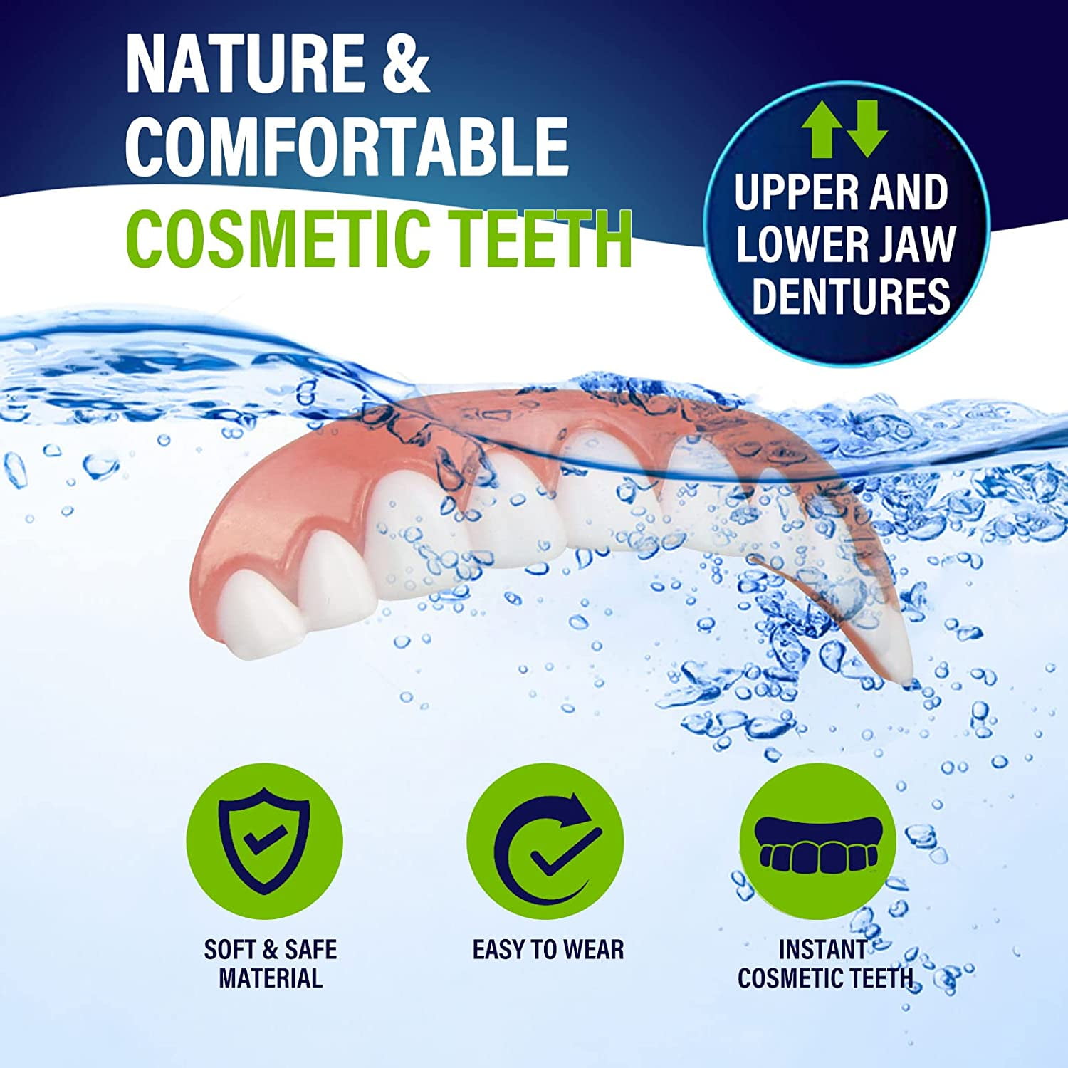 Fake Teeth,Dentures Teeth for Upper and Lower Jaw, Nature Shade Regain Smile(2PCS)