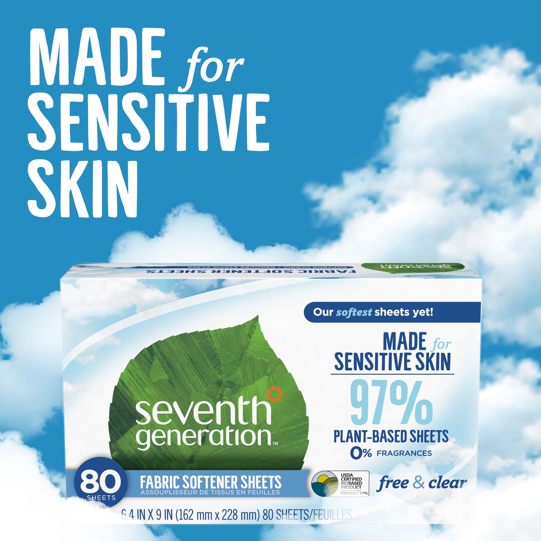 Seventh Generation Dryer Sheets Fabric Softener Free & Clear 80 Sheets