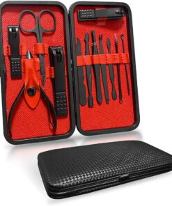 Women Man Manicure Set,Women ManNail Clippers Pedicure Kit-Black Stainless Steel Professional Pedicure Kit,Nail Scissors Grooming Kit with Leather Travel Case,Set of 12