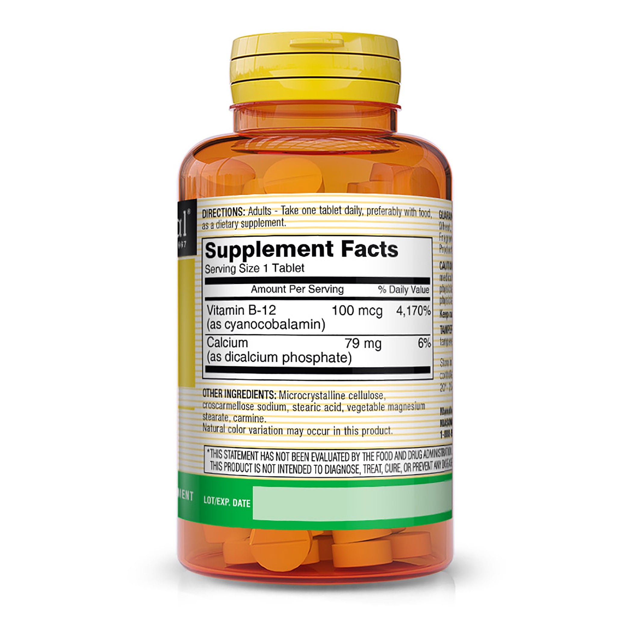 Mason Natural Vitamin B12 100 mcg with Calcium – Healthy Conversion of Food into Energy, Supports Nerve Function and Health, 100 Tablets