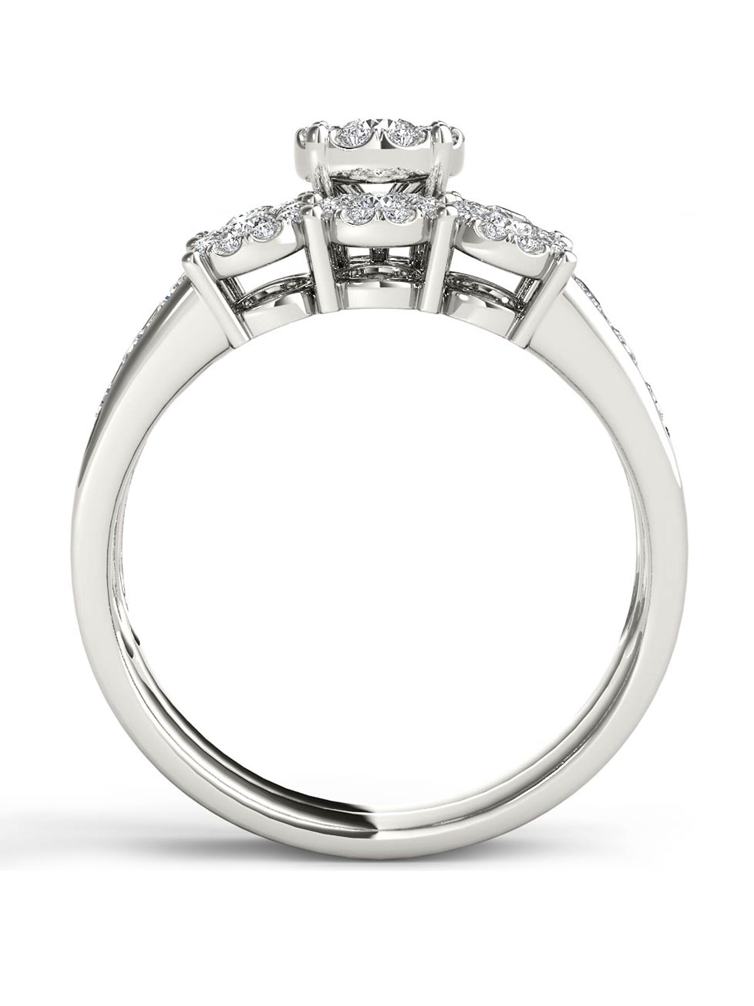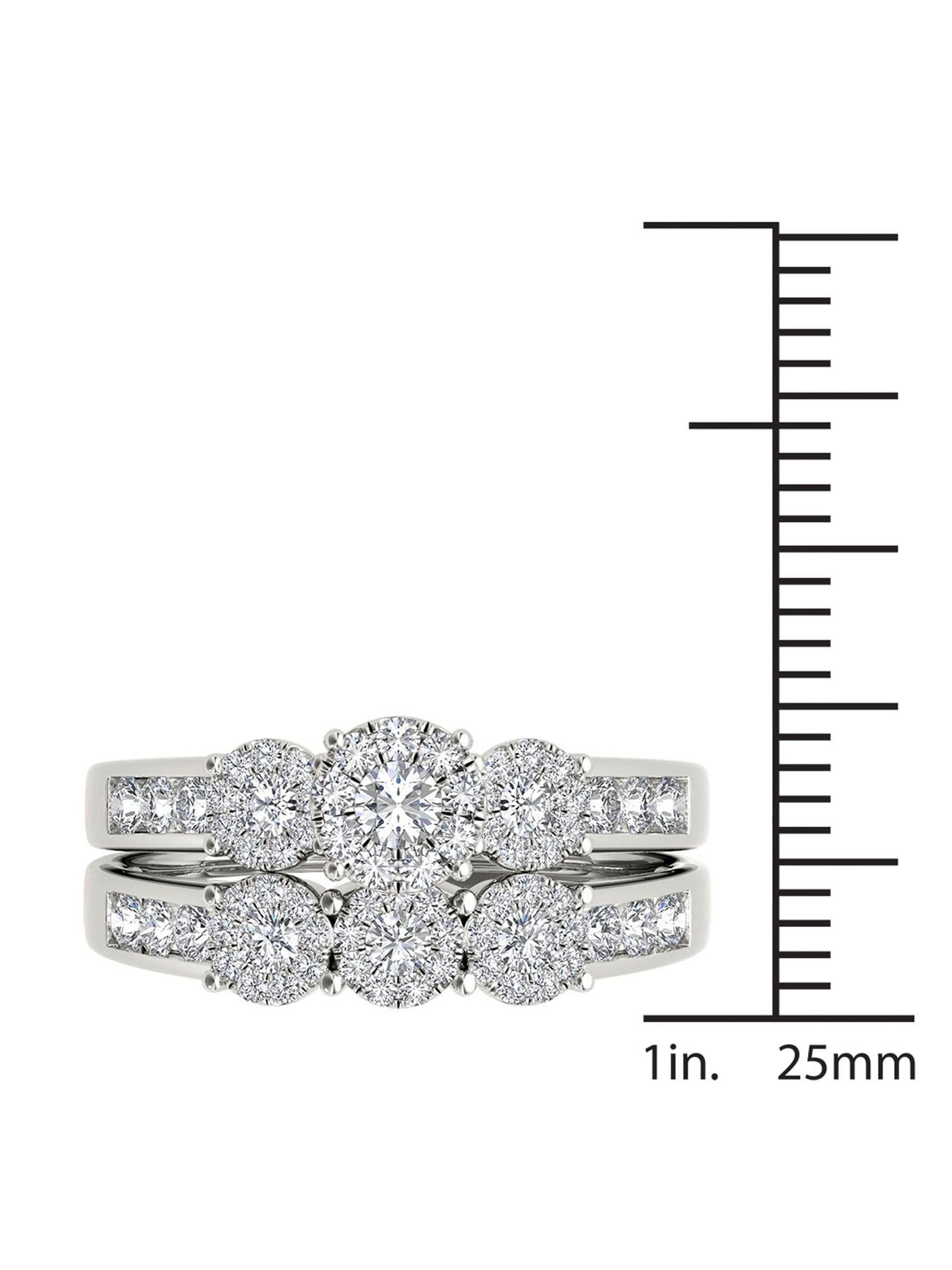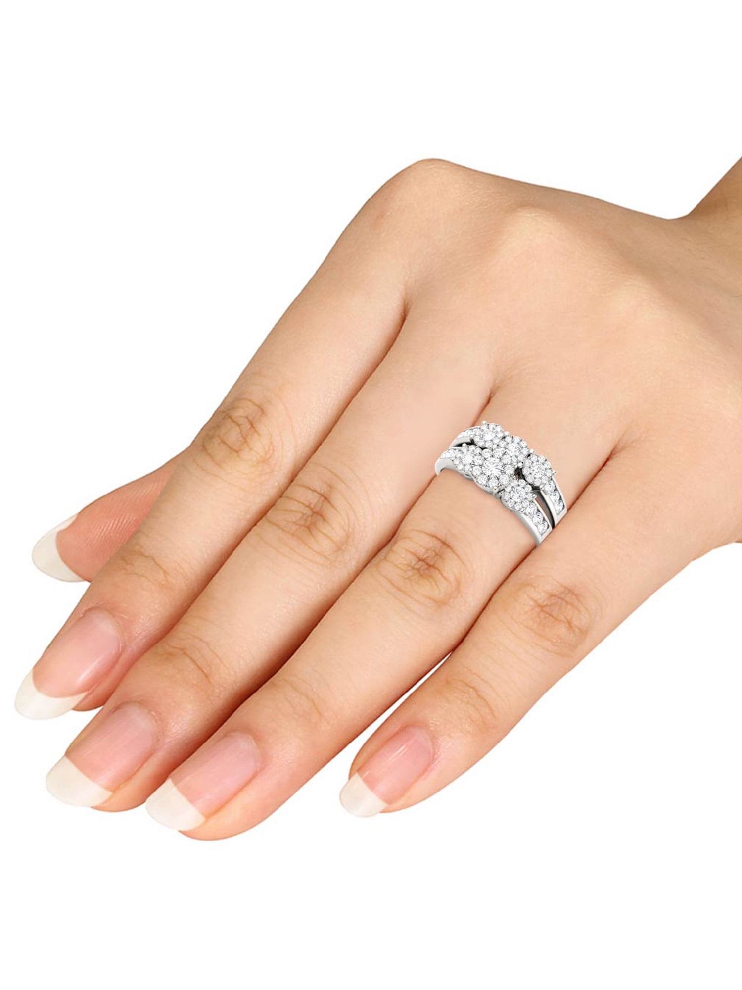 She means the world to you. Celebrate your love and ask for her hand with this exquisite diamond engagement ring, beautifully crafted in white gold.Imperial 1 Carat T.W. Diamond 10kt White Gold Three-Stone Round-Shape Bridal Ring Set:Diamond weight: 1 ct. t.w.Diamond color: H-IDiamond clarity: I2Diamond setting: pave setCrafted in 10kt white goldAvailable in sizes 6-9Learn MoreLearn about diamonds