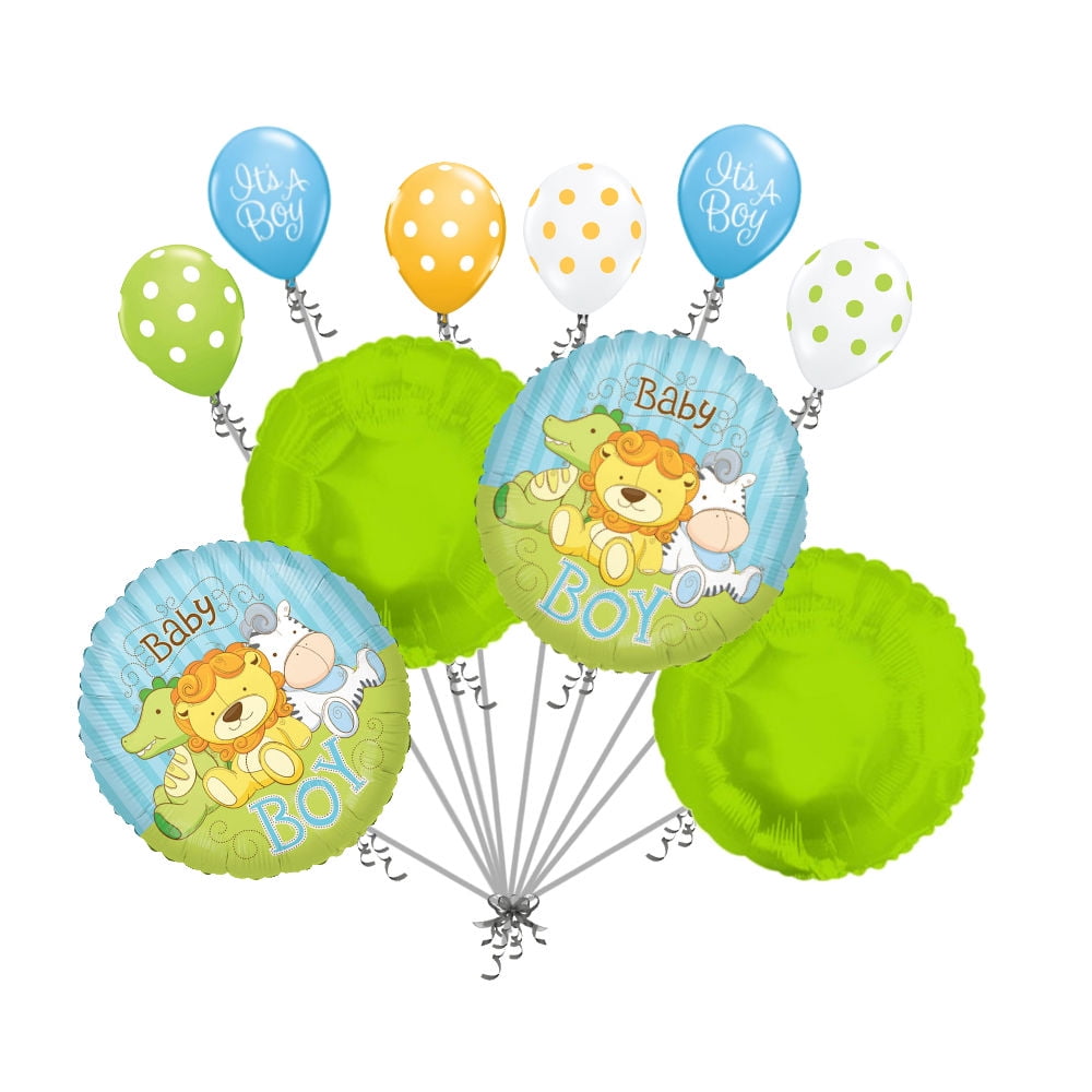 10 pc New Baby Boy Jungle Animal Balloon Bouquet Welcome Home Baby Shower Safari