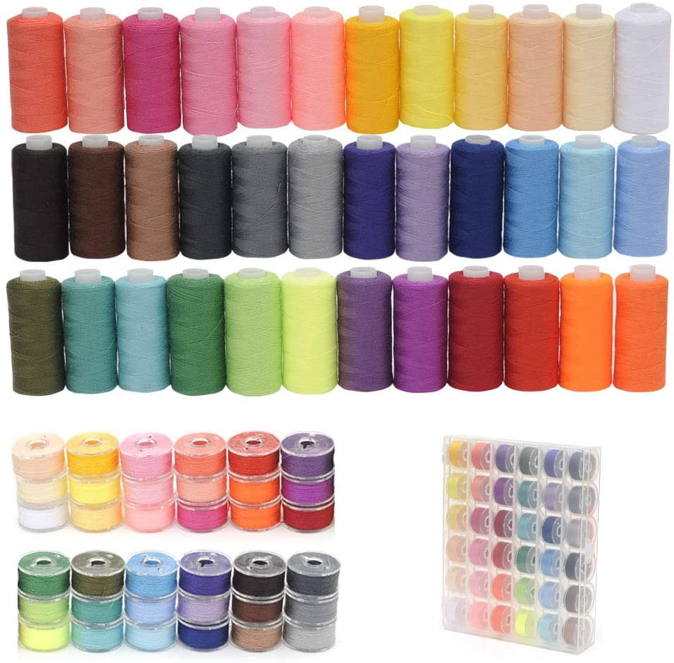 72Pcs Sewing Threads Kits, Polyester Sewing Threads 36 Colors, 400 Yards Each Polyester Thread Spools with Prewound Bobbins for Hand & Machine Sewing
