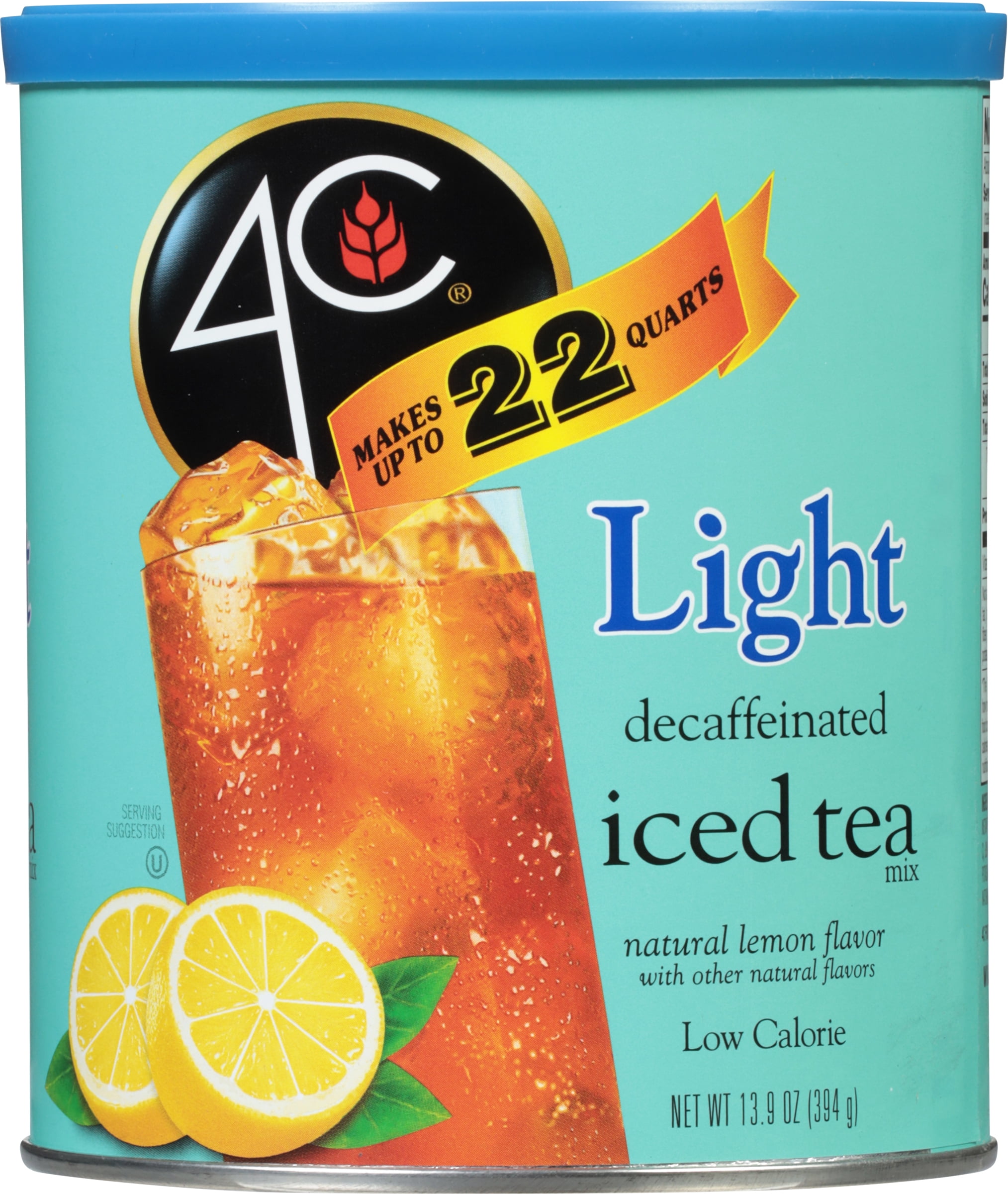 4C Light Naturally Decaffeinated Lemon Flavor Iced Tea Mix 13.9 oz. Canister