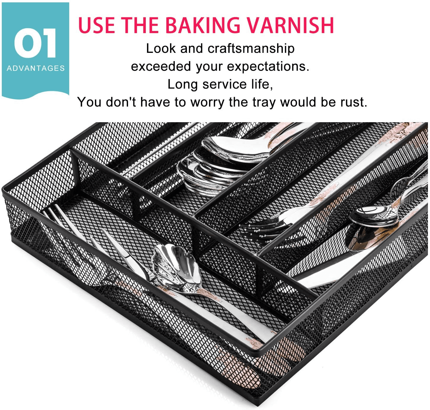 - Durable Material- Sturdy environmental carbon steel with black epoxy coated finish protects your flatware from damage. It will not rust.