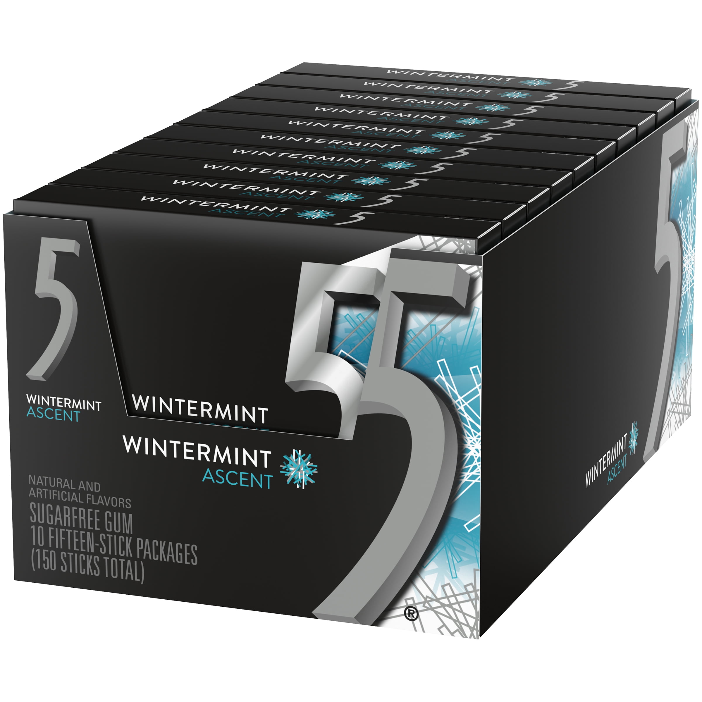 5 Gum Wintermint Ascent Sugarfree Gum, 10 packs