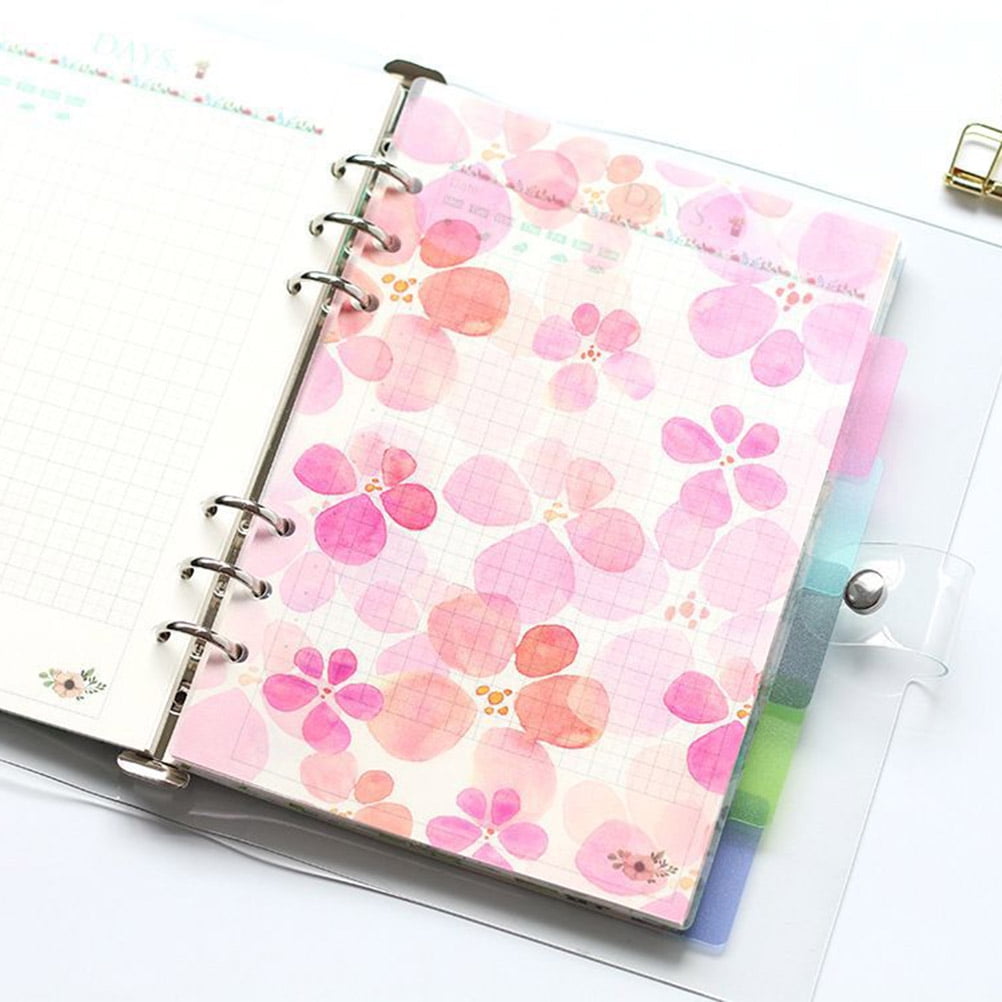 This is a package of 6 pieces A5 PP refills divider. Easy insertion in all standard A5 Size 6-ring binders. With smooth surface, it is perfect for writing, drawing, etc. The classification page tab works perfectly with the spiral bound traveler notebook. Extra-wide dividers that offer, bigger tabs, secure inserts and reinforced holes.