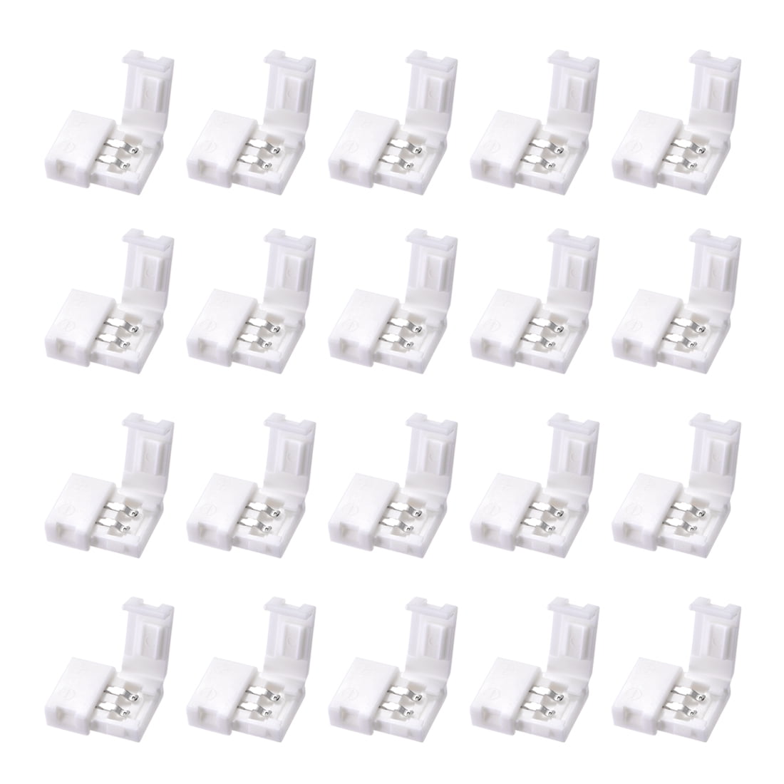 8mm 2P LED Strip Connector Solderless for Single Color 3528 2 Conductor Strip Light 20 Pcs