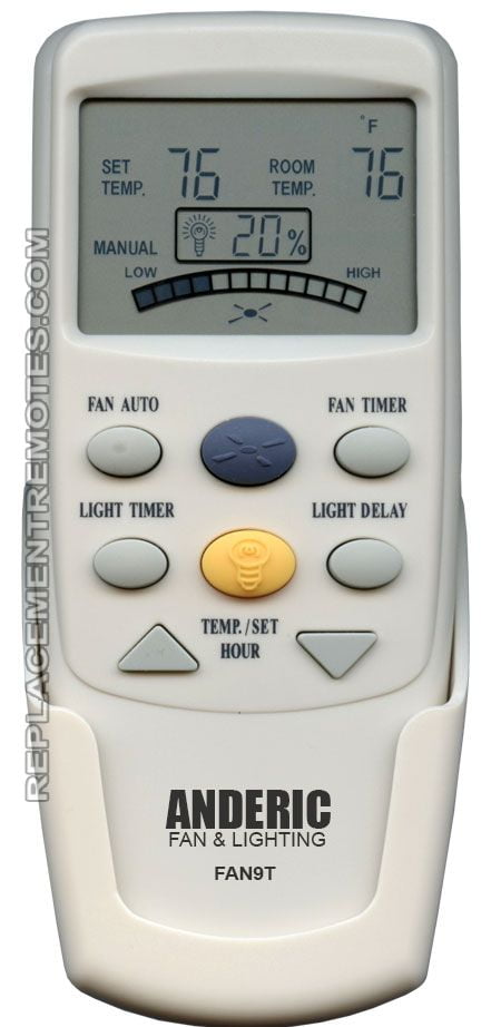 ANDERIC FAN9T Timer Thermostatic with Fan Timer for Hampton Bay (p/n: FAN9T) Ceiling Fan Remote Control (new)Buy ANDERIC FAN9T Timer Thermostatic with Fan Timer for Hampton Bay Remote Control (p/n: FAN9T)Compatible Device Type: Ceiling FanCompatible brands:, Hampton-Bay, Harbor-Breeze The Anderic FAN9T (with Timer key) replaces the original Hampton Bay FAN-9T with the Timer key (no Reverse key). 100% compatibility guarantee.L3HFAN-9T with FAN TIMER button. Works with deck style receiver. Will do light dimming. Comes with Wall mount holder.Additional Unit Identification