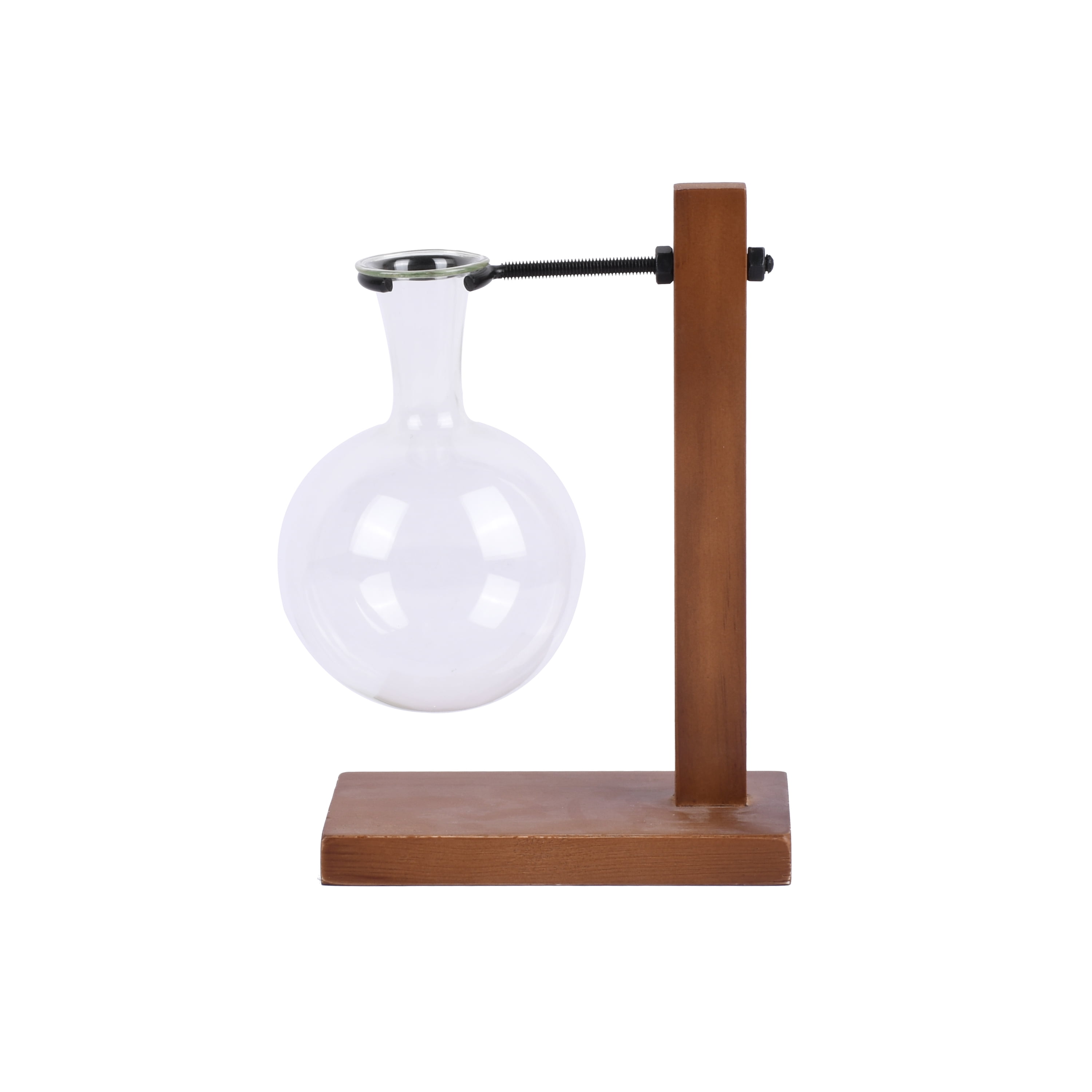 Better Homes & Gardens Single Bulb Shape Propagation Station Terrarium is perfect for a desk or coffee station table without taking up much space. The plant propagation is made of natural wood, which is strong and durable. The bulb vase is made of high-quality borosilicate glass, thickened and enlarged design to provide a better growth environment for your plants. A stylish way to display the artificial or fresh flowers, plant cuttings, mixed bouquets, and water rooted plants. Observe the growth of plant through the transparent glass. Plant your beloved plants or cuttings, when you are tired at work, you can relax your eyes with green plants at any time. Hang the glass bulbs onto the metal swivel holder, together with green life, brings more vigor. Please plant your favorite plants in this product, please do not directly expose the glass ball filled with water to the sun.