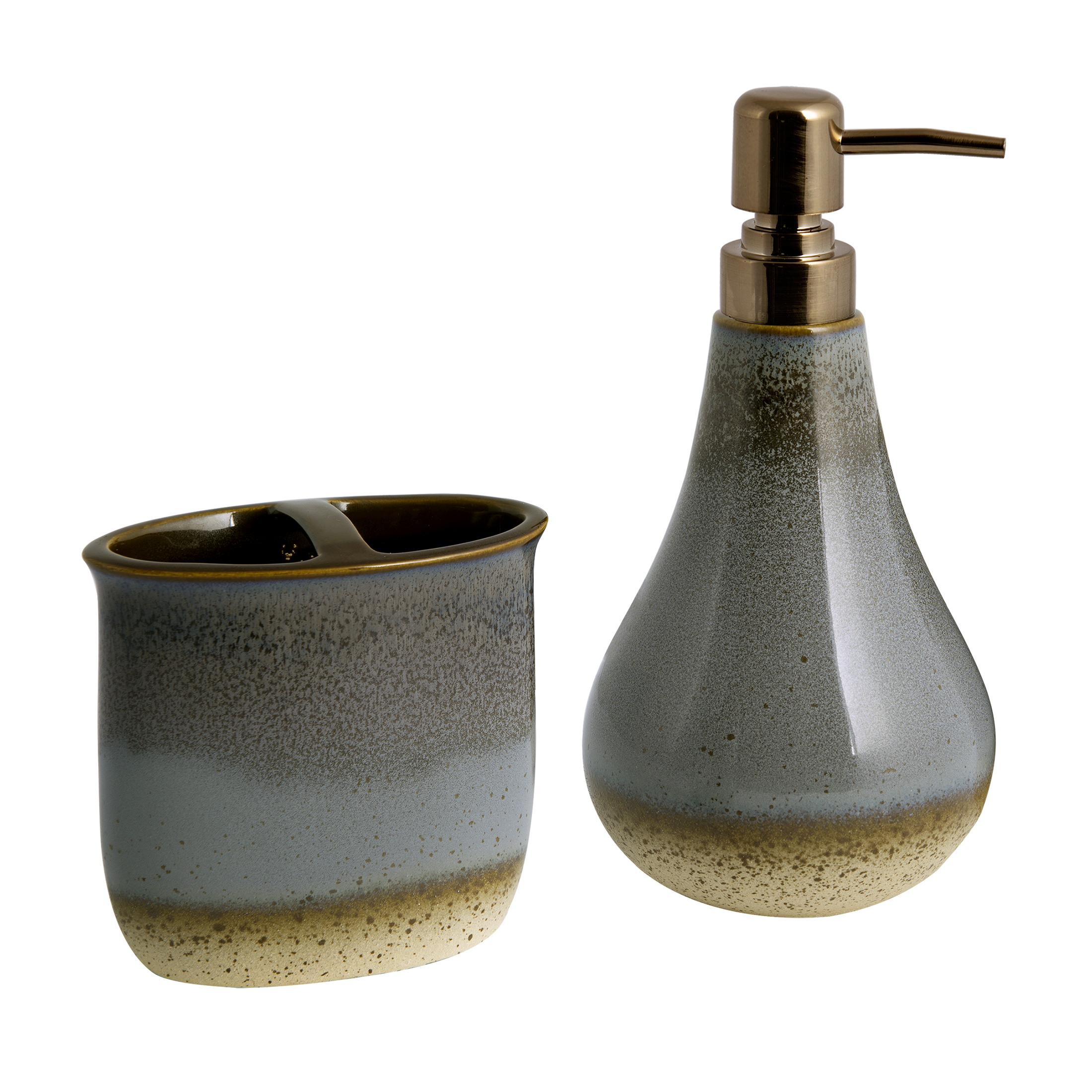 - Ceramic Lotion Pump in tones of grey and natural adds an earthy rustic feeling to your bathroom