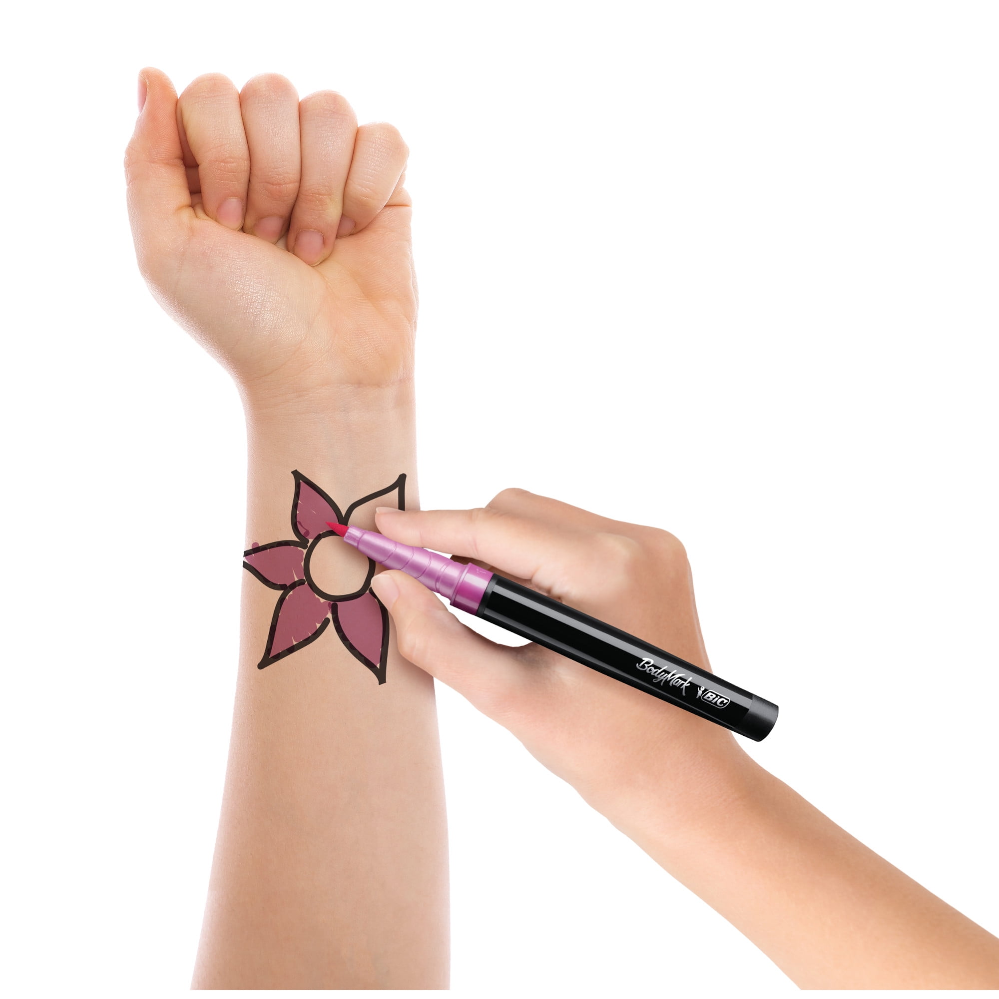 Have fun expressing yourself and stand out from the crowd with BodyMark by BIC Temporary Tattoo Markers! These cosmetic-quality markers are safe on skin* and come in vivid, long-lasting colors. Whether you are going to a party, supporting your favorite team, attending a festival, or you just feel like trying something different, these markers will help you create unique tattoo designs that reflect your style and mood.