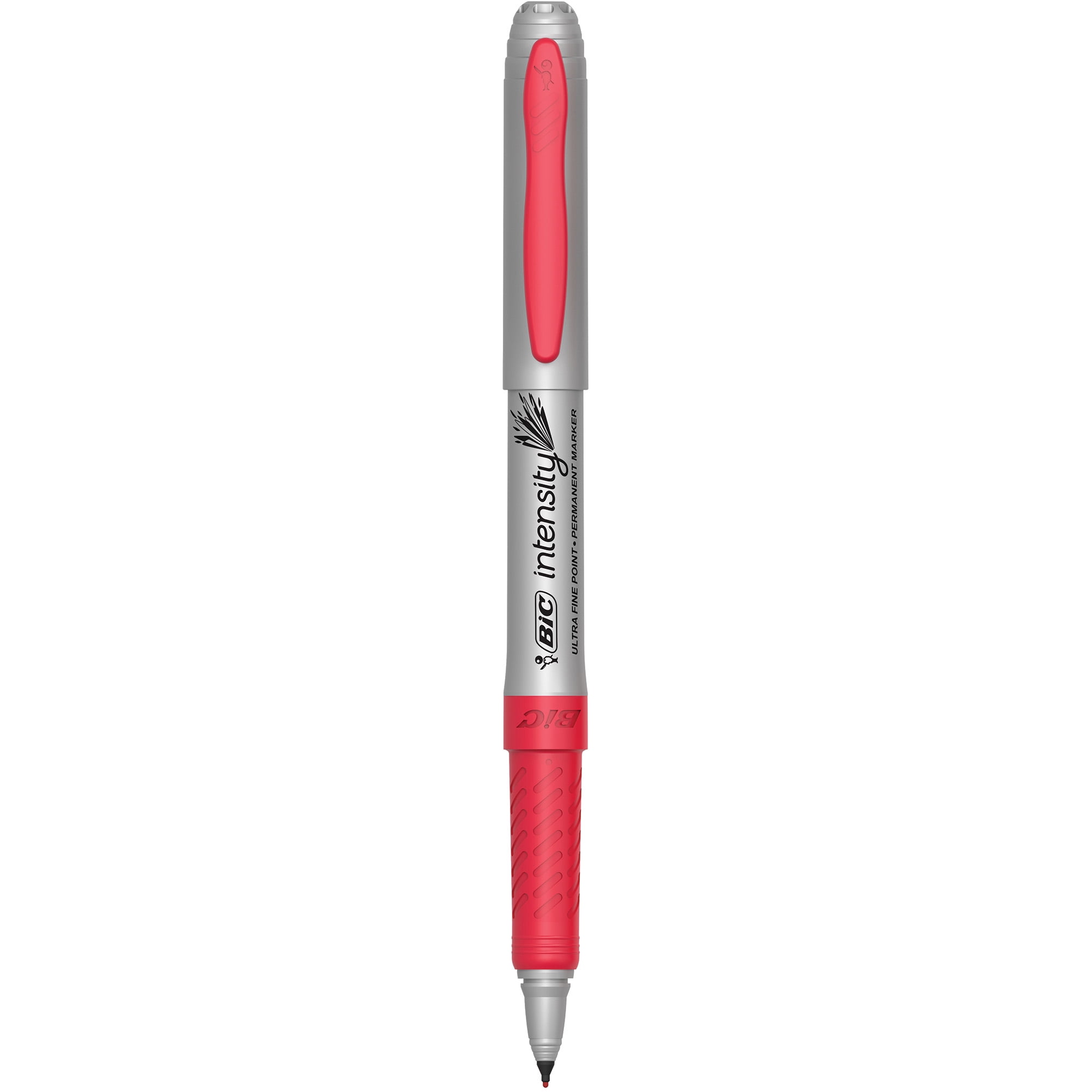 Bring colorful flair to your creations with BIC Intensity Ultra Fine Tip Permanent Markers. These permanent marker pens have an ultra fine tip that creates crisp, neat lines perfect for detail work and lettering. BIC Intensity colored permanent markers feature bold, long-lasting ink that is both fade- and water-resistant. Low-odor, acid-free and ACMI-approved non-toxic, the quick-drying ink in these BIC markers write on just about everything, including glass, plastic, metal, photographs and coated paper. The barrels of these BIC markers have soft non-slip grips and the durable tip prevents wear down. Plus, the unique snap-cap is designed with a vapor seal locking mechanism that prevents dry-out. In classic colors such as blue, black, red and green. This permanent marker set contains 36 fashion-inspired colors in a variety of shades.