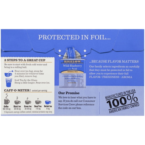 - Bigelow Wild Blueberry with Acai, Caffeine-Free Herbal Tea Bags, 20 Count