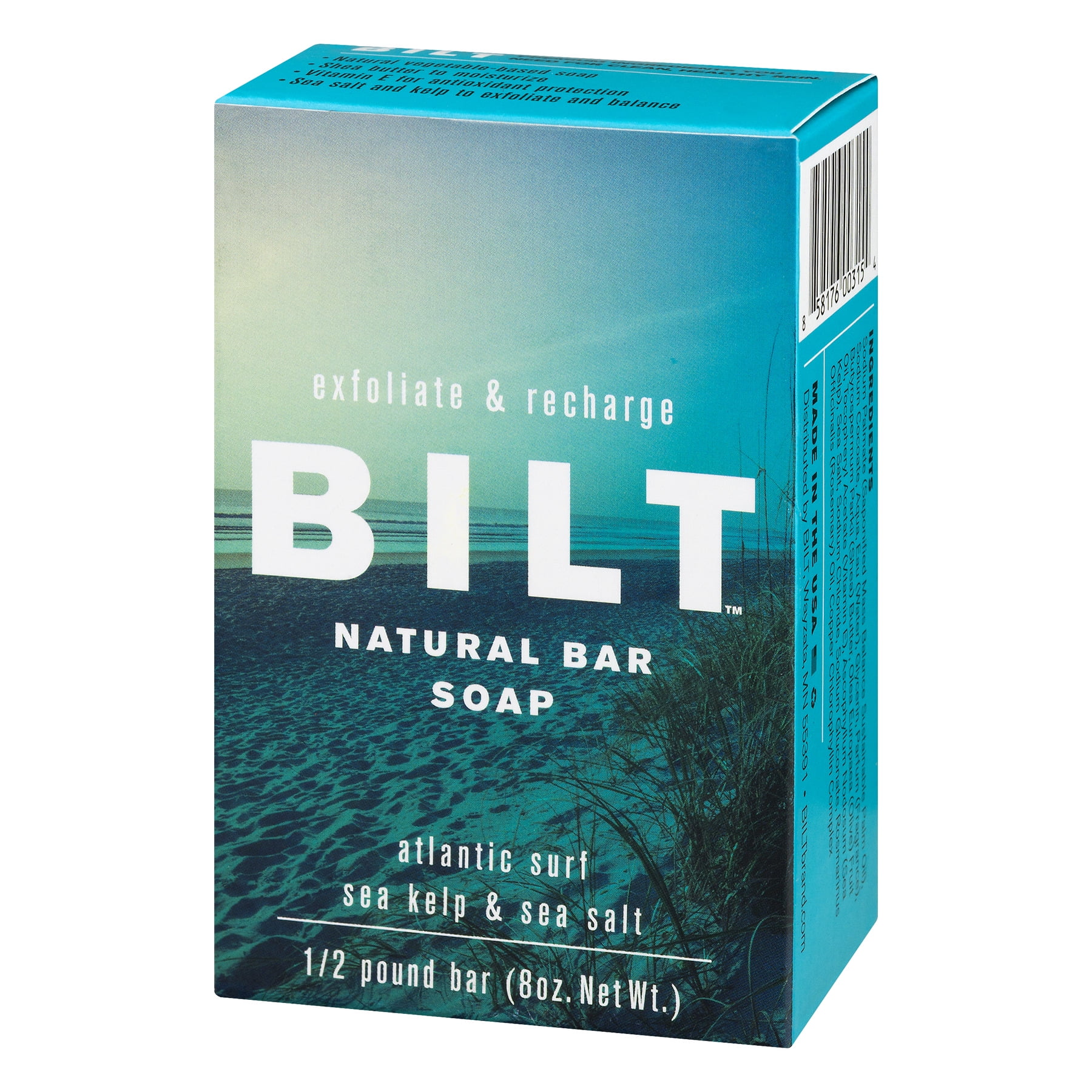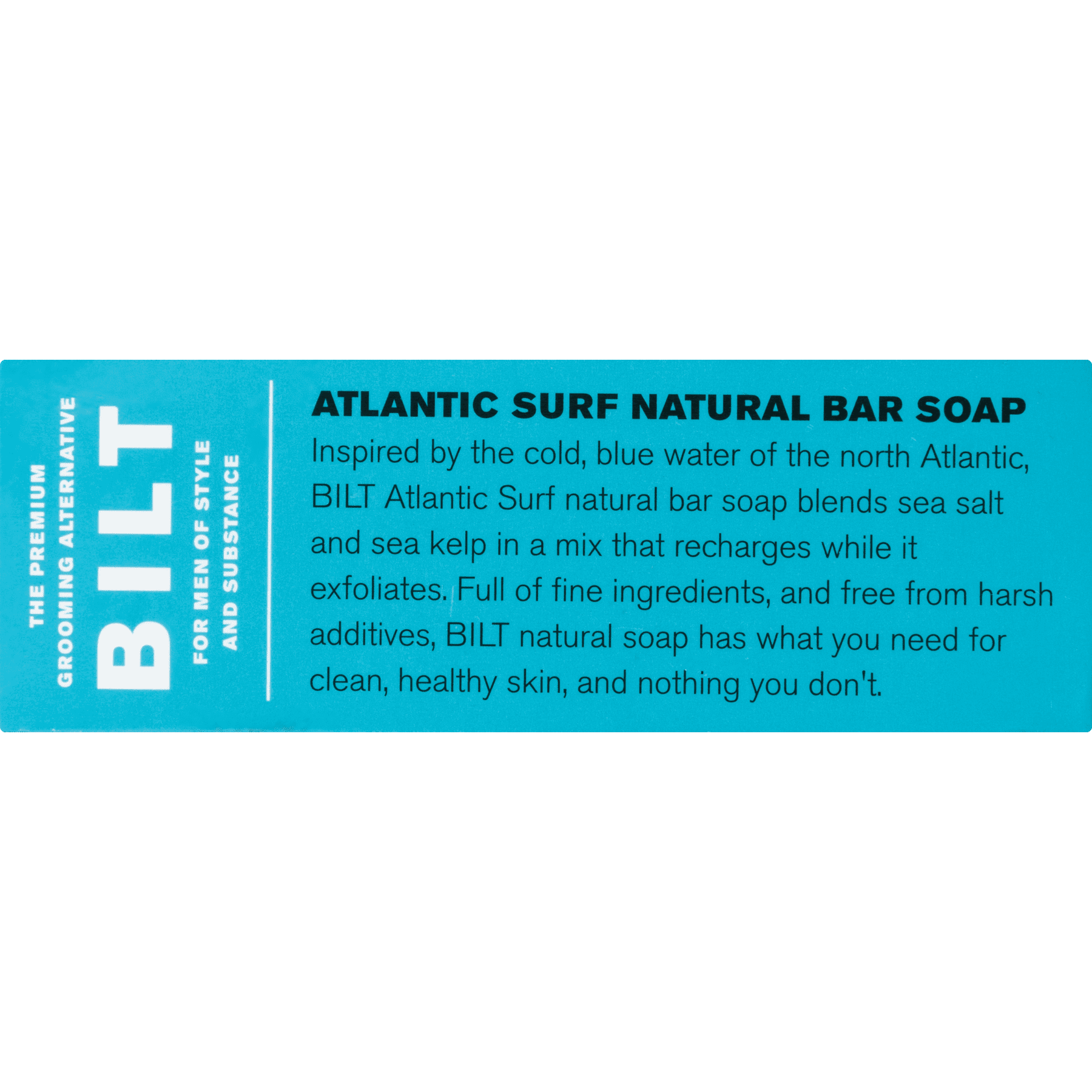 BILT Natural Bar Soap Atlantic Surf is inspired by the cold, blue water of the ocean. It features a blend of sea salt and sea kelp in a mix that recharges while it exfoliates. BILT bar soap is full of fine ingredients and free from harsh additives. It has what you need for clean, healthy skin. It also contains vitamin E for antioxidant protection and shea butter to moisturize. This product is made without parabens, phthalates and sulfates. It contains no animal products and is made without animal testing.