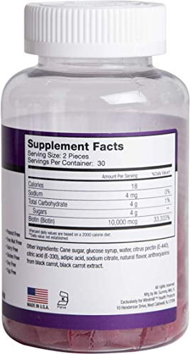 For Beautiful Hair, Skin and Nails. Thicker, Stronger Hair. Stronger Nails. Younger Looking Skin. Delicious Strawberry Flavor Biotin 2000 mcg with Pectin Peanut Free, Gluten Free, Soy Free, Dairy Free, Egg Free. *These statements have not been evaluated by the Food and Drug Administration. This product is not intended to diagnose, treat, cure or prevent any disease.