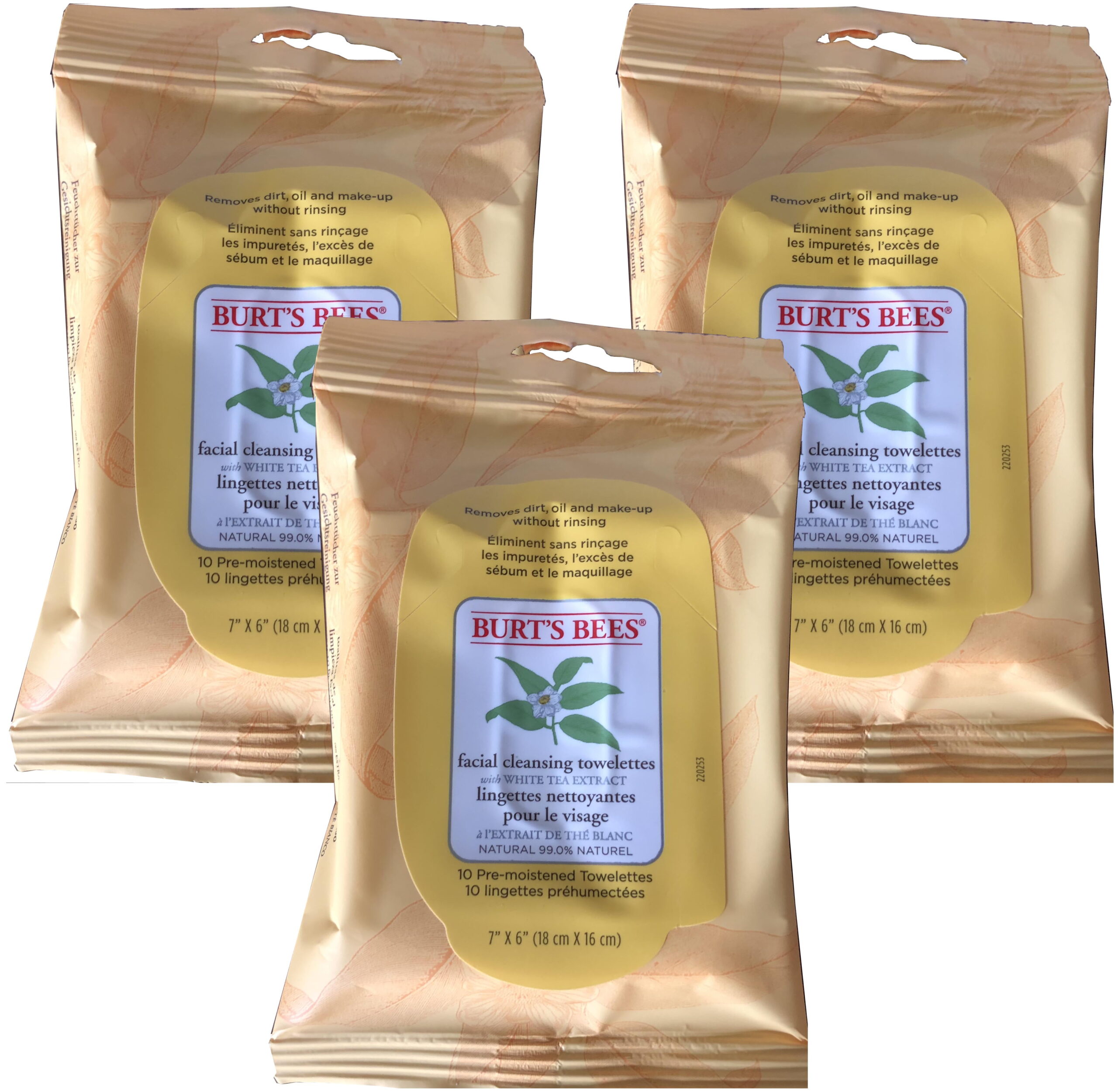 Burt’s Bees Facial Cleansing Towelettes with White Tea Extract, 10 Count, 3 Pack