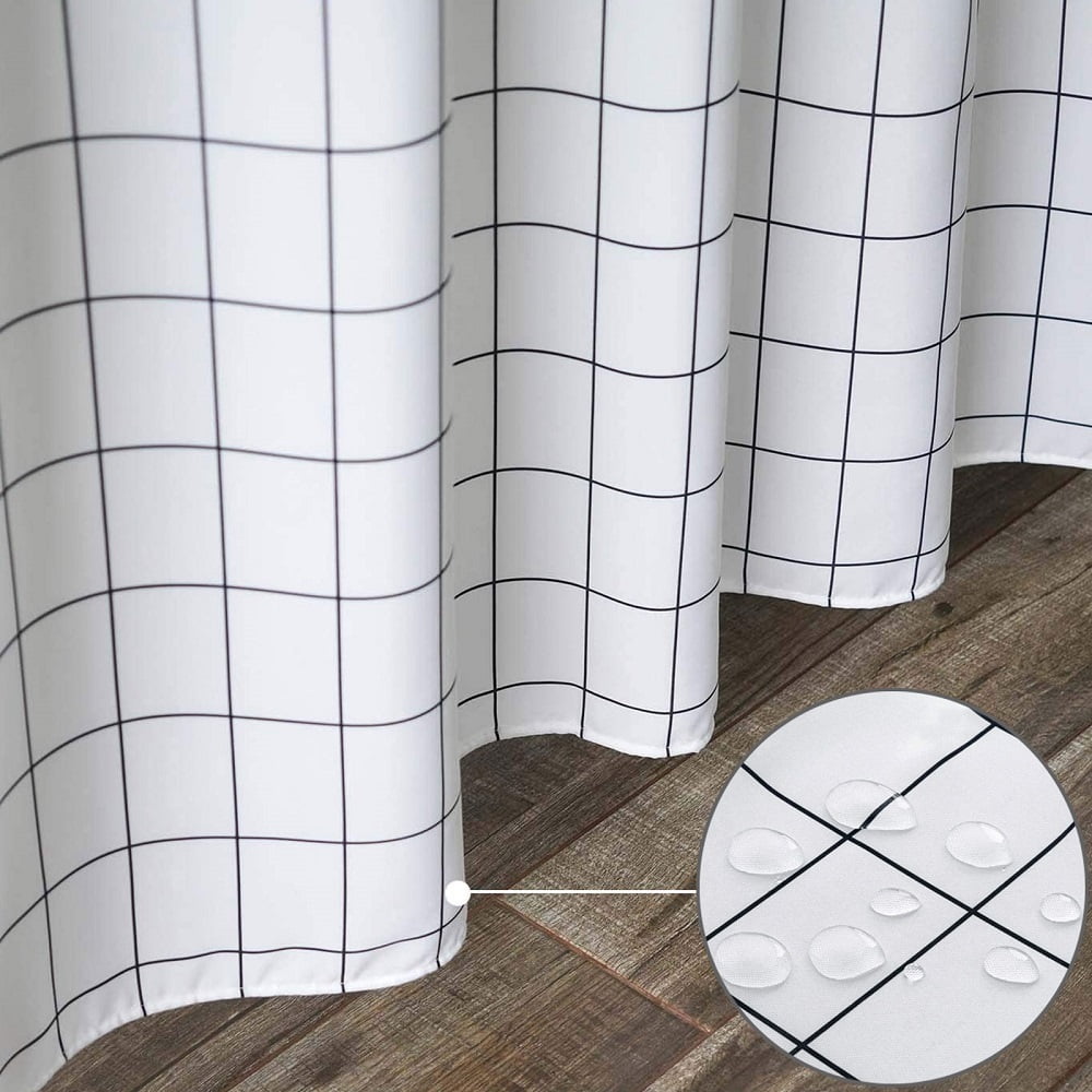 CabinaHome Standard 72×72’/72×78′ Fabric Shower Curtain, Black and White Geometric Grid Bathroom Curtain with Hooks, Heavy Duty, Weighted Hem, Waterproof (WxH: 72×72′)