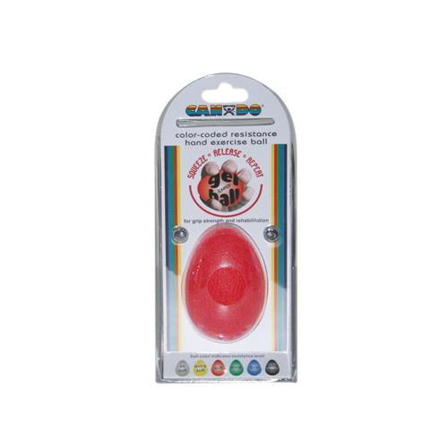 CanDo® Gel Squeeze Ball hand exerciser for grip strength, dexterity, mobility, and fine and gross motor skills. Heat or chill for use in hot or cold therapy. Available in 6 color-coded resistance levels. Each level (firmness) available in circular or egg shape. Balls can withstand temperatures ranging from -76 degrees Fahrenheit to 167 degrees Fahrenheit CanDo® Gel Squeeze Ball – Large Cylindrical – Red – Light