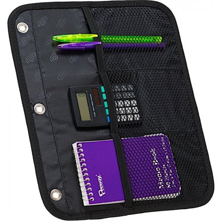 The Case-it DUAL-121-A zipper binder has two separate sets of rings, for a total storage space equivalent to a 3-inch binder. Use up to 600 sheets in all. Each set of rings is separated for easy organization and reference. We added in the "hold down pages" or keep all of your papers secure to their side like paper weights – they even provide extra storage for your writing tools! If you need more pockets, the front of the binder has a pocket that can hold a notebook for later use. This practical zipper binder closes completely to protect the contents from falling out or getting damaged. An additional pencil pouch comes included to store pens, pencils, and other essentials. Easily take your school work home with you because every DUAL-121-A comes with a shoulder strap and handle.
