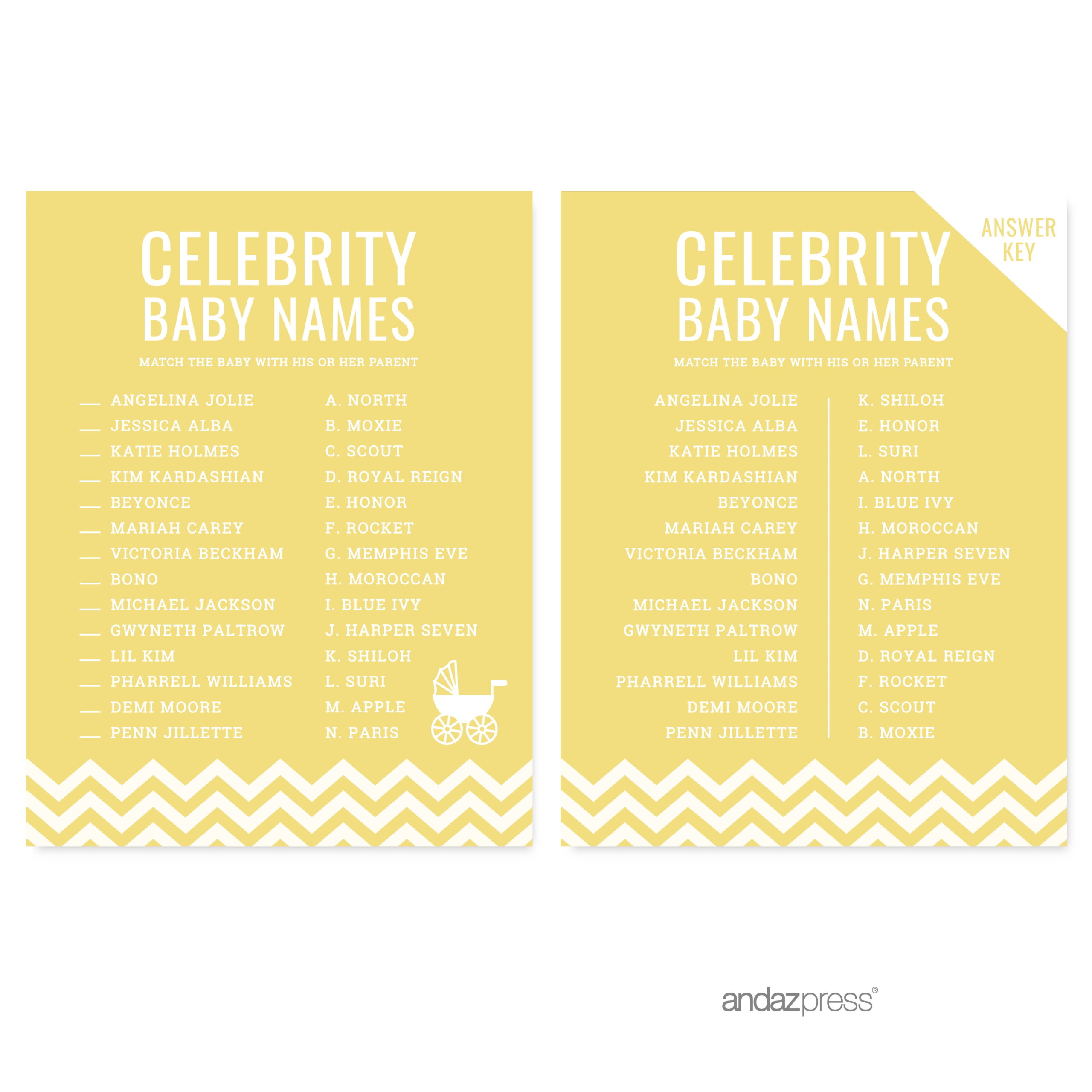Celebrity Name Game Yellow Chevron Baby Shower Games, 20-Pack