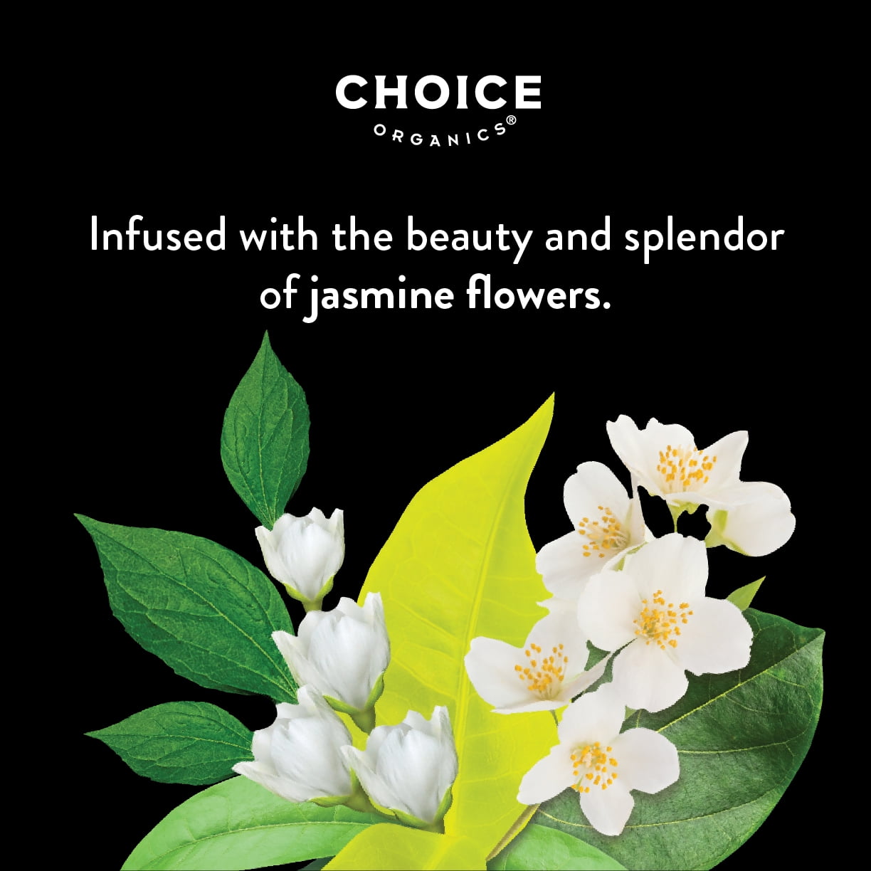 - Flavor: Choice Organics Organic Jasmine Green tea is floral and fragrant. This blend is a perfect balance of green tea infused with the beauty and splendor of jasmine flowers.