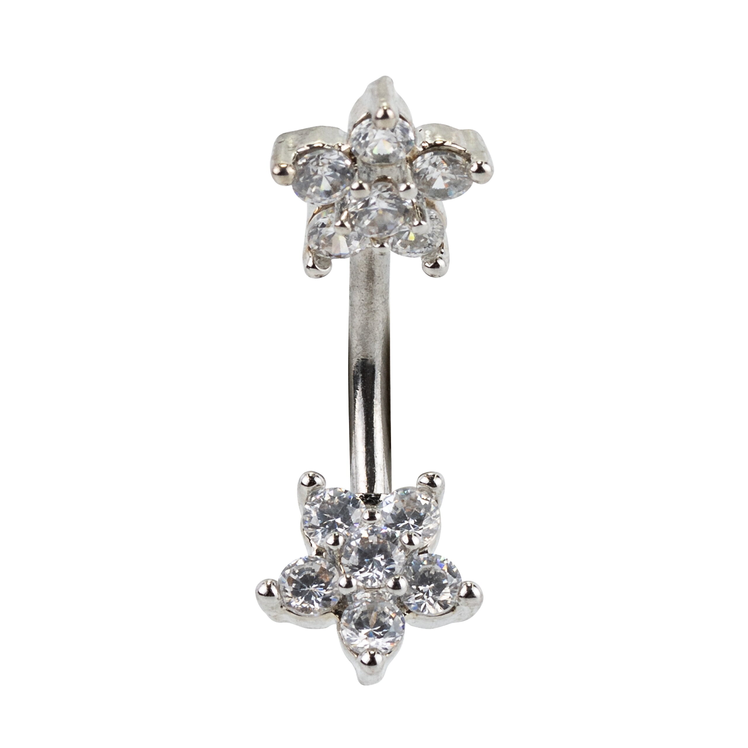 - Includes silver-tone banana bell post belly ring with dual faux crystal flowers