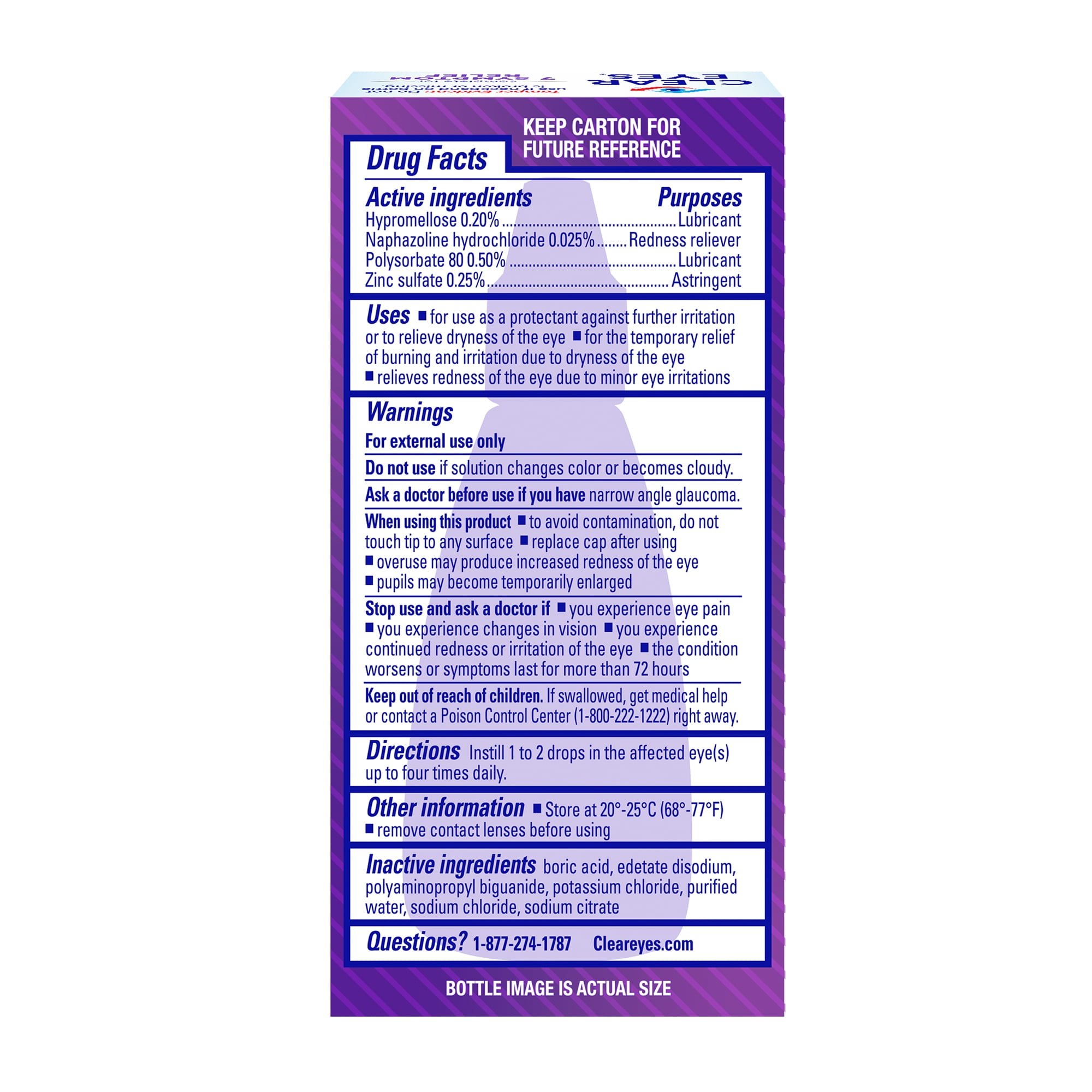 - Clear Eyes 7 Symptom Relief Eye Drops provide multi-symptom relief for irritated eyes