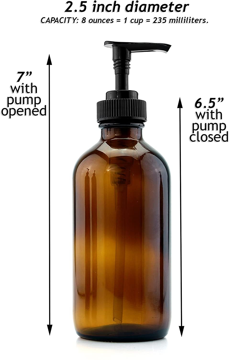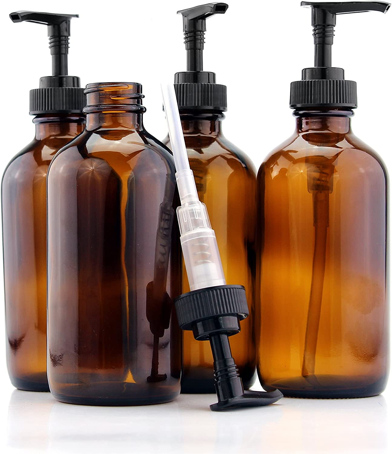 Cornucopia 8-Ounce Amber Glass Pump Bottles (4-Pack; 8oz)
