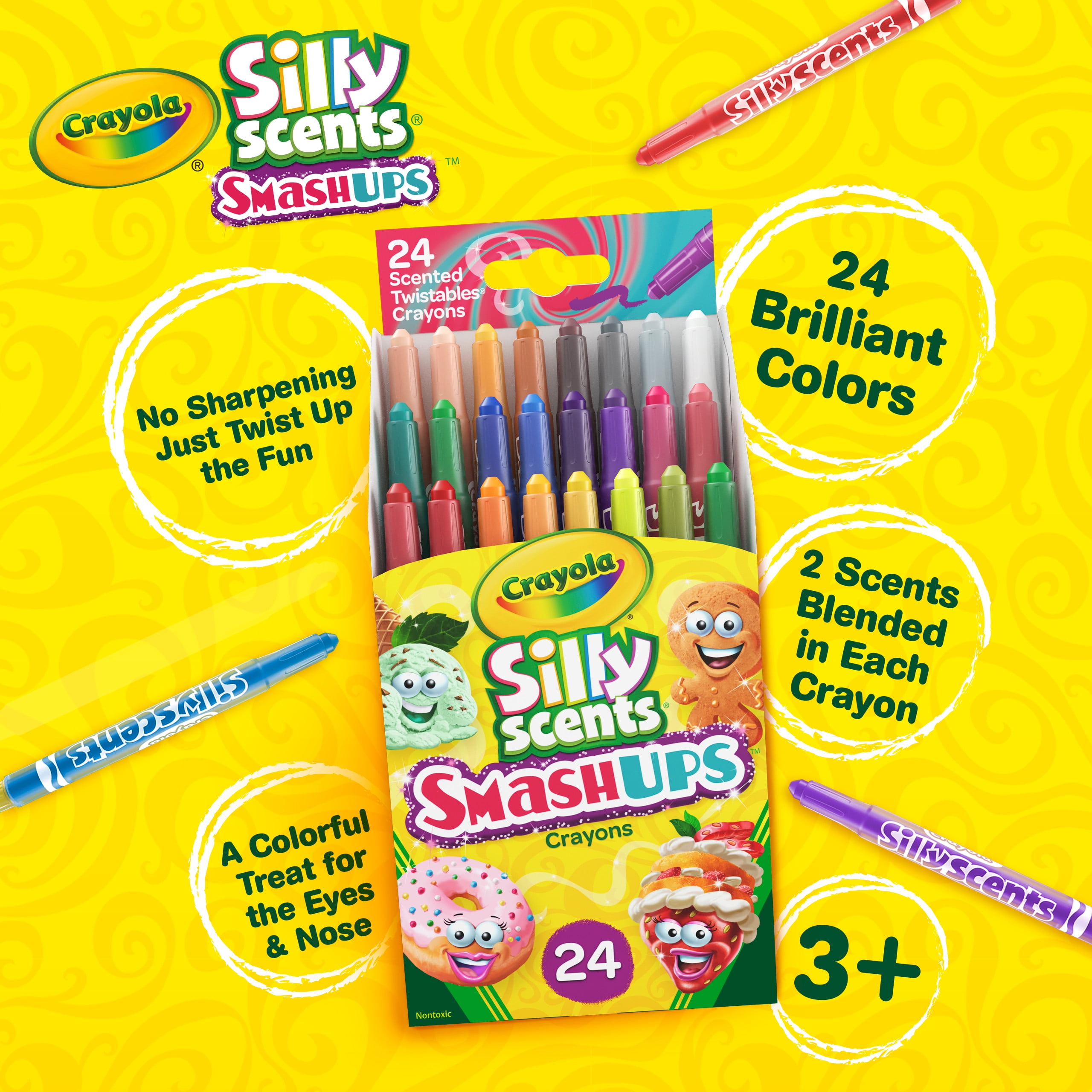 - CRAYOLA SCENTED CRAYONS: Includes 24 Scented Mini Twistables Crayons in assorted Smash Up scents.